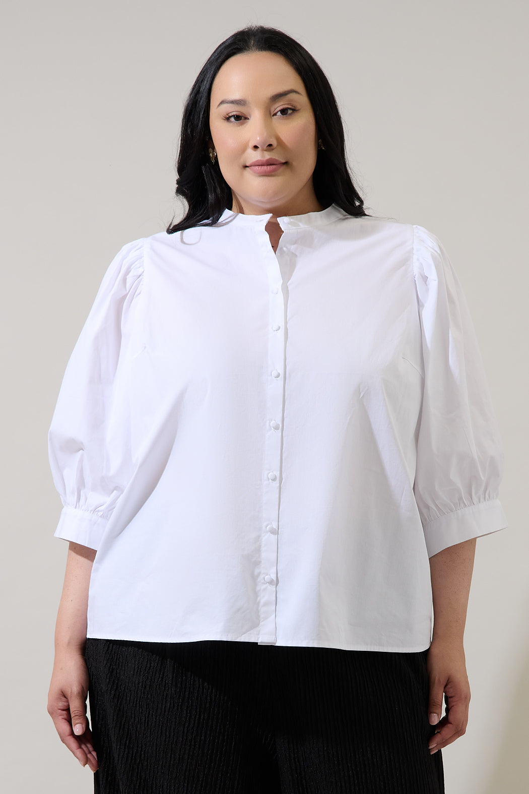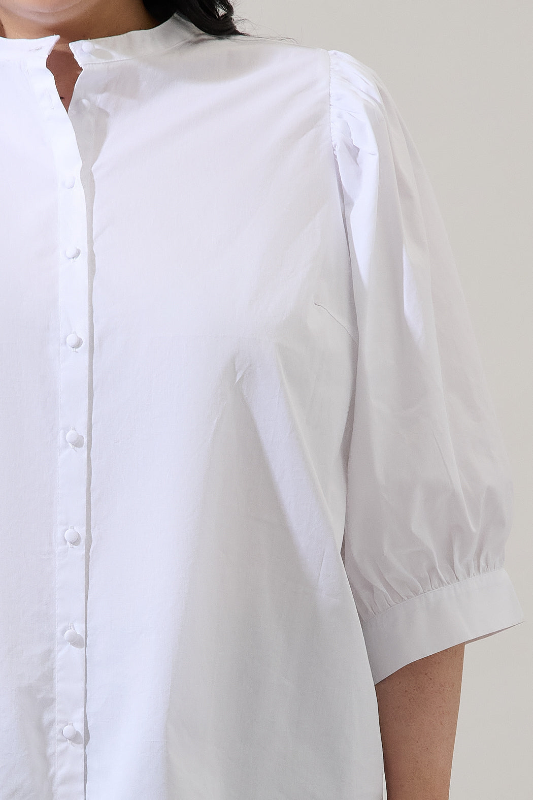 We can never have too many shirts. This three quarter long sleeve frames a crew neckline. It has a functional button down placket in the middle. Easy shirt to pair with trousers or jeans.