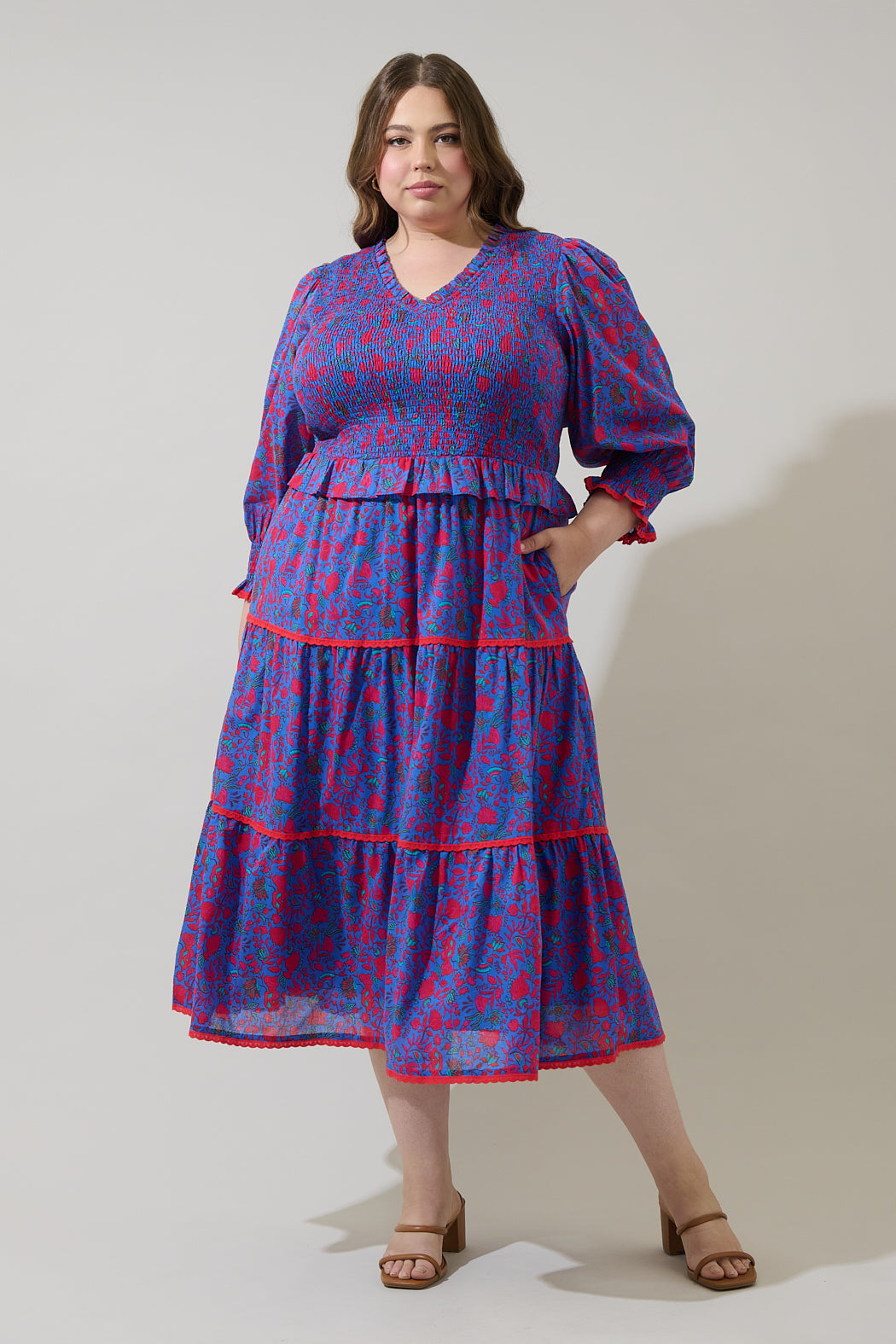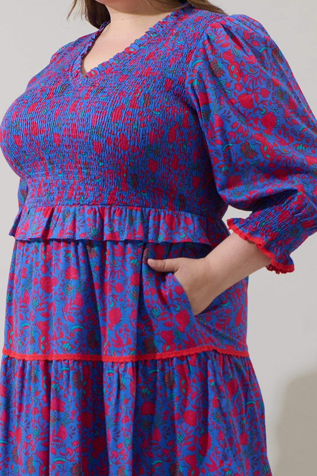 Tanya Floral Trudy Smocked Midi Dress Curve