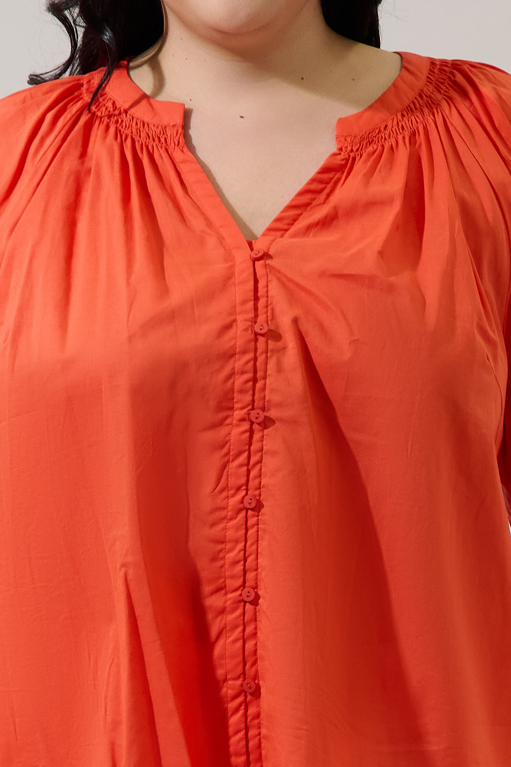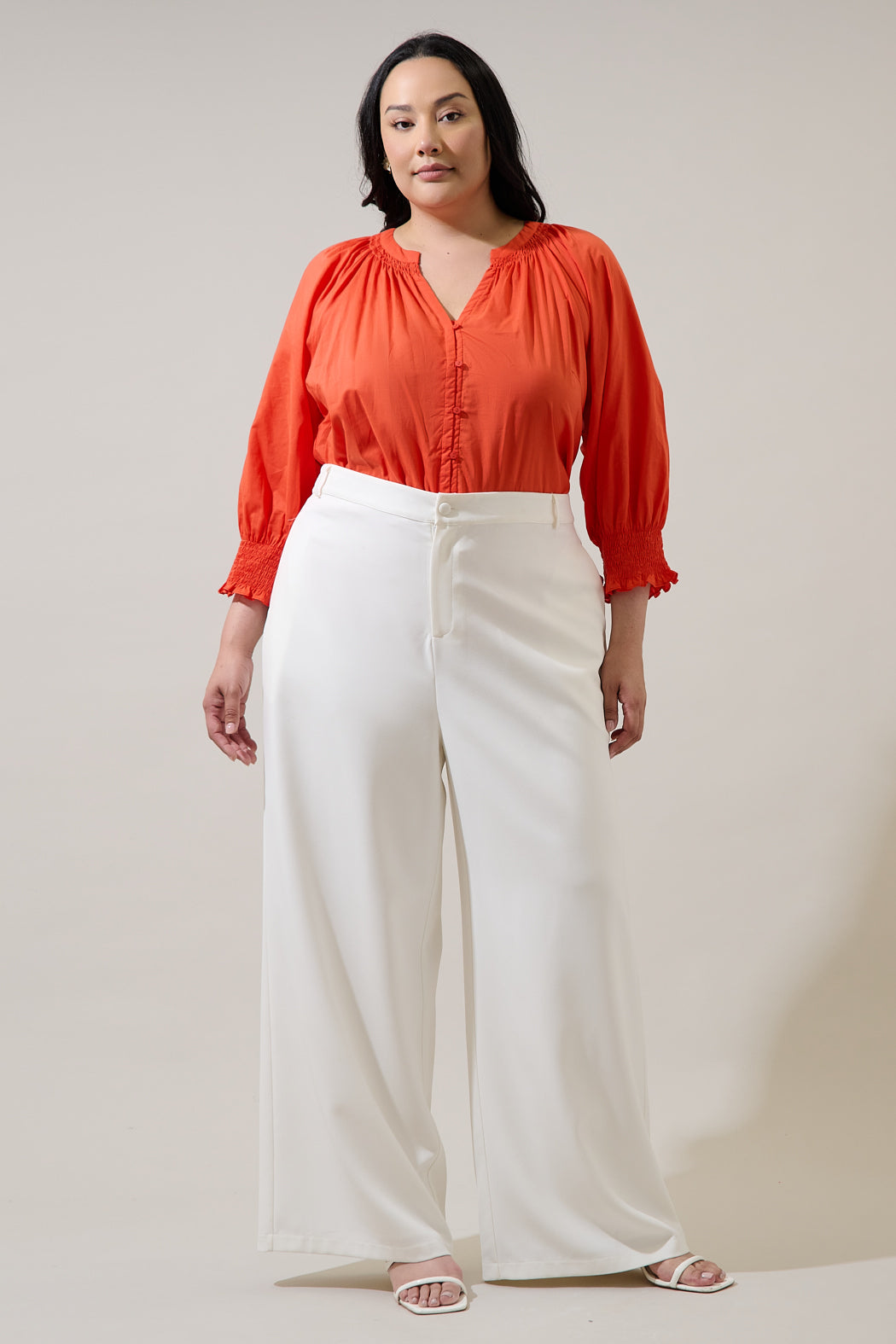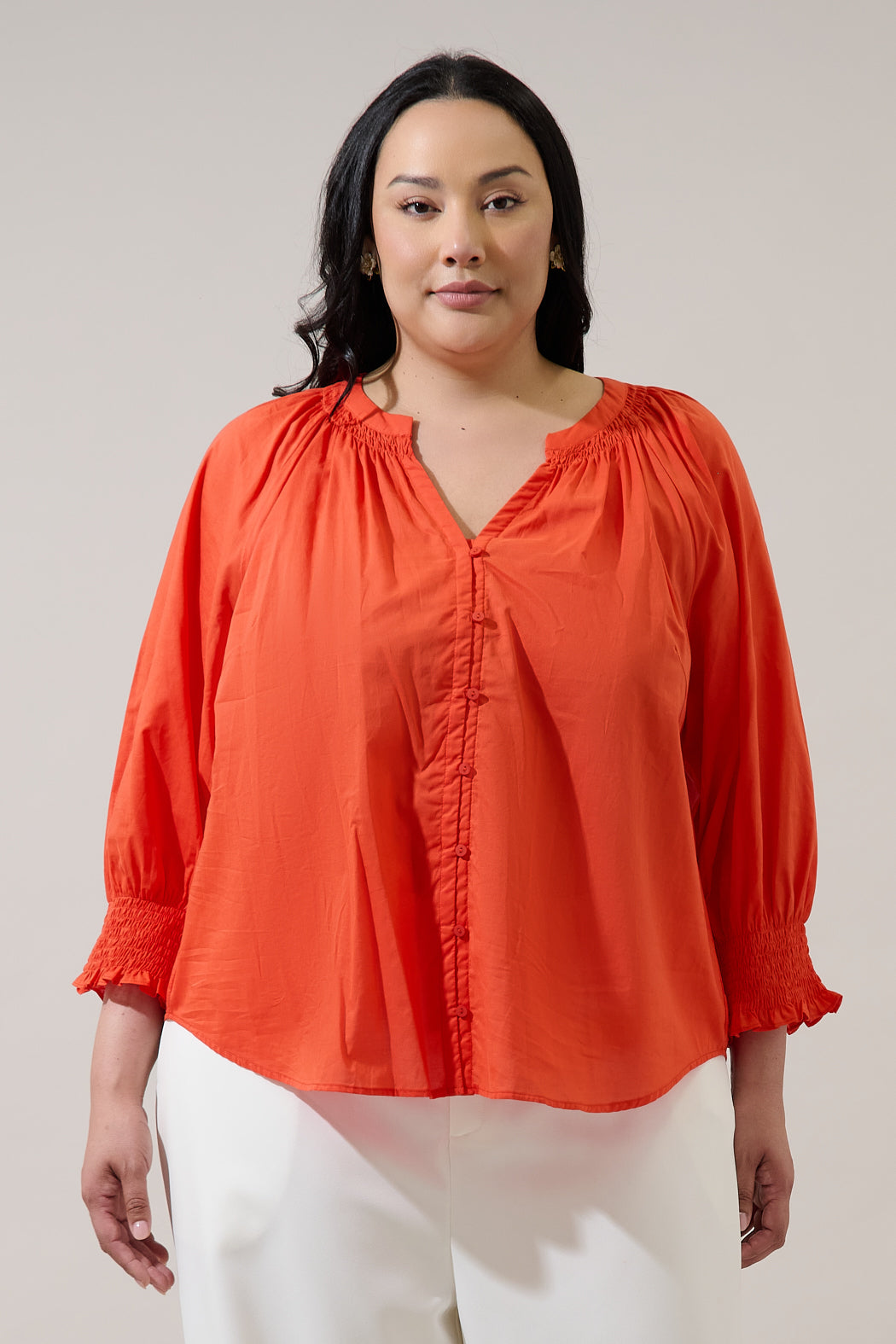 Unleash your inner style icon with the must have top of the season! It features a soft, breathable fabric and a button down front with a V-neck. The long sleeves have a smocked band at the end. Complete the look by pairing it with high waisted denim for a weekend outing.
