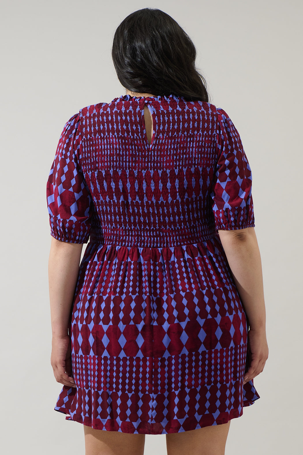 Ramsay Abstract Sulen Smocked Mini Dress Curve