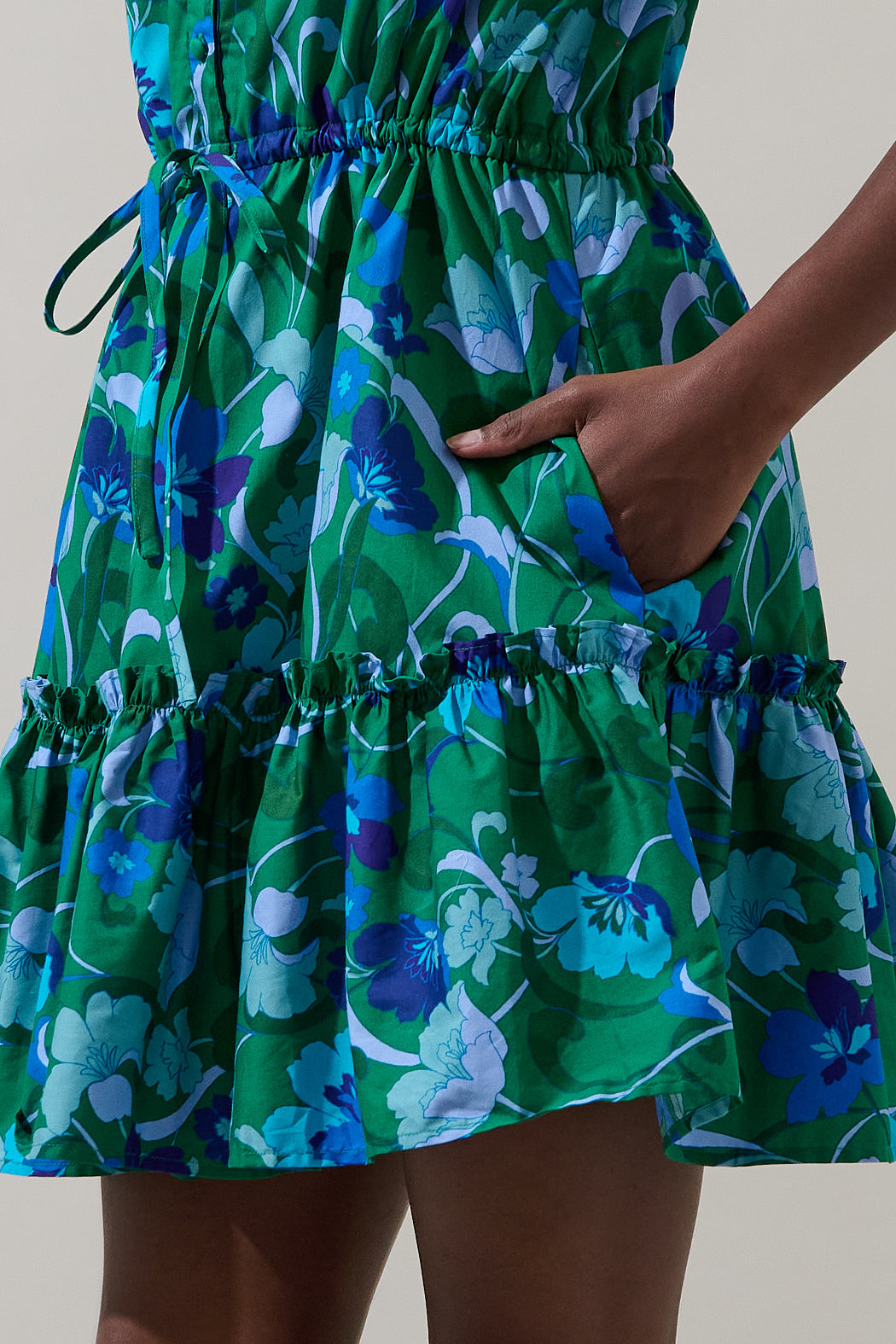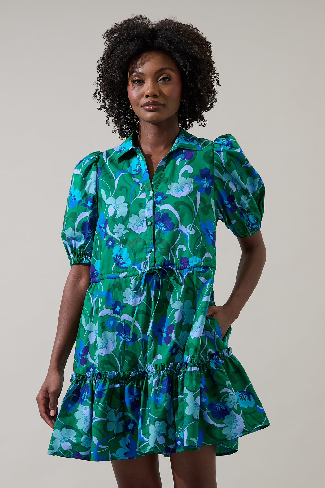 The Rea Floral Stacie Button Down Mini Dress has the perfect combination of orange and fuchsia florals throughout. Lightweight cotton fabric that has button down style with fitted bodice, and short half sleeves with elastic cuffs. A flirty ruffle hem finishes off the look and can be paired with heels.
