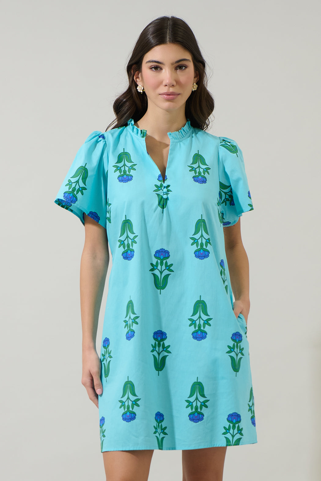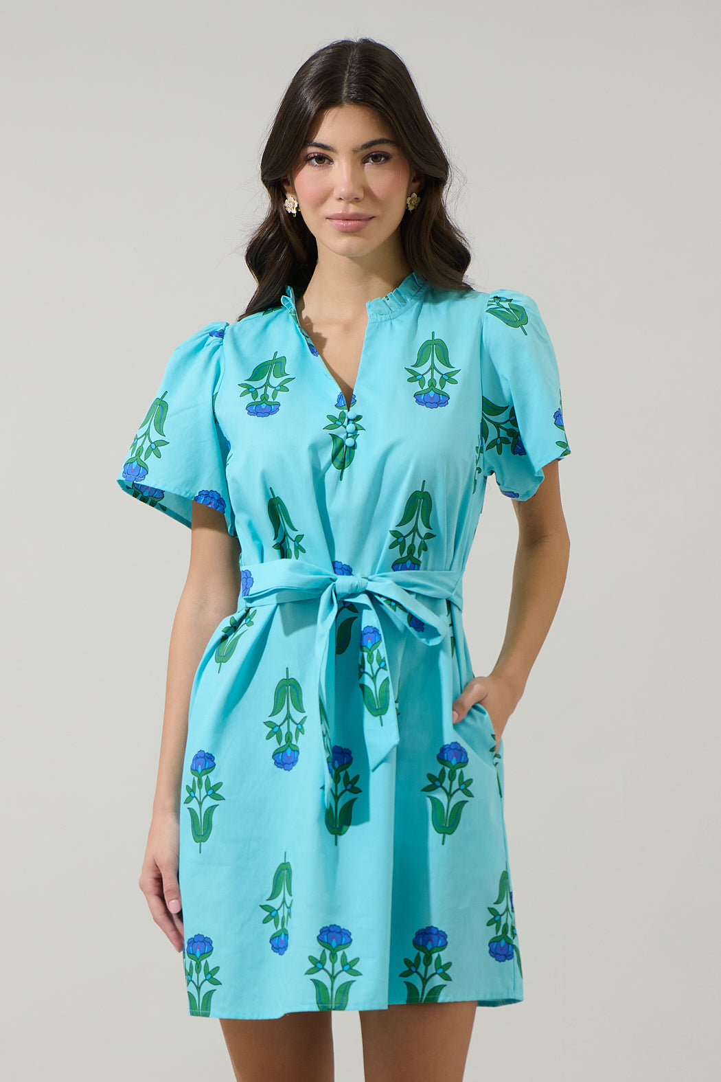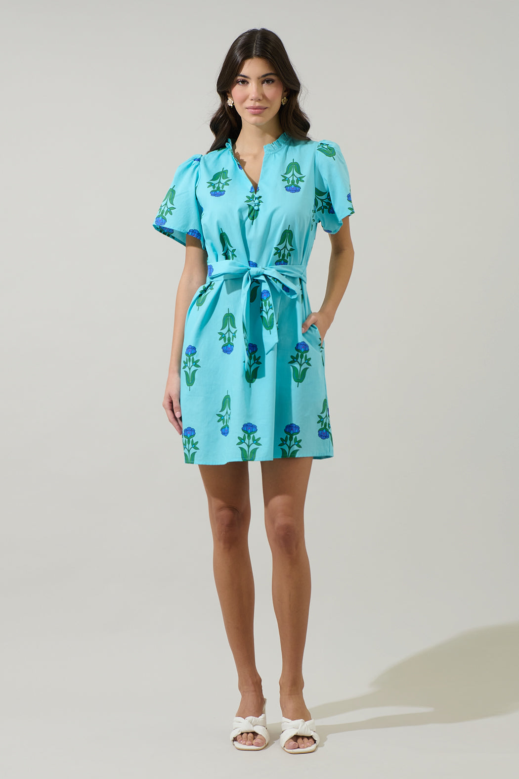 It's impossible not to love the way you'll look in the Amena Floral Ema Shift Mini Dress. A cute floral design charms this mini dress with short sleeves, ruffle and split neck, and a belted waist. You can remove the belt to keep it more shift and pair it with white heels.