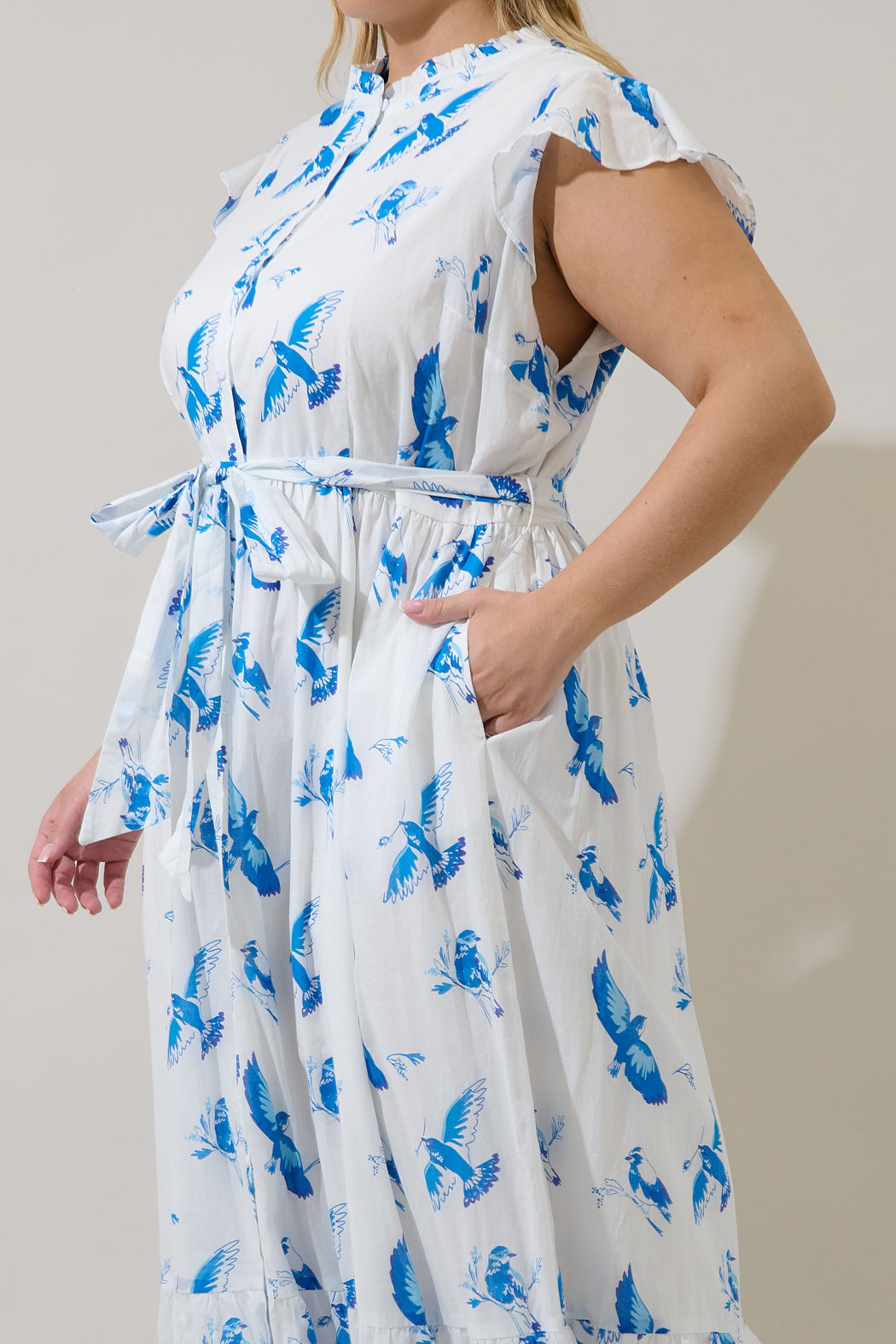 Chirp worthy and charming! Short ruffle sleeves frame a mock neck with a button down feature in the front, and a matching belt adjusts at the waistline. Pair it with strappy heels and a delicate clutch for a polished daytime look.