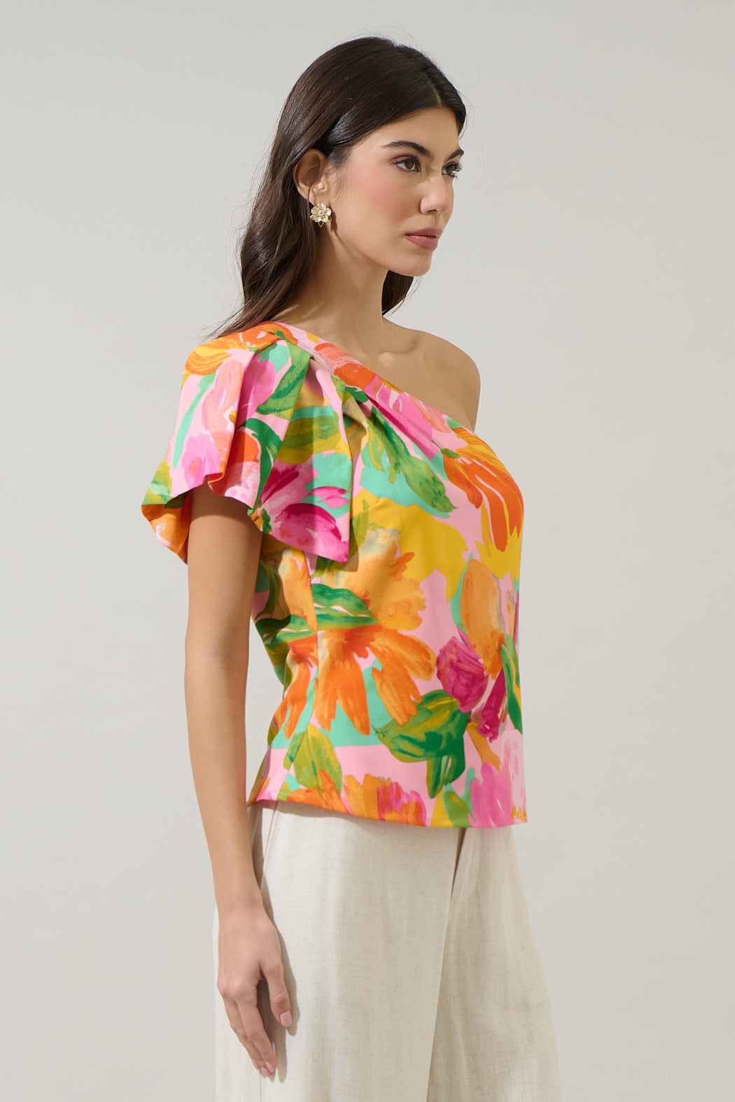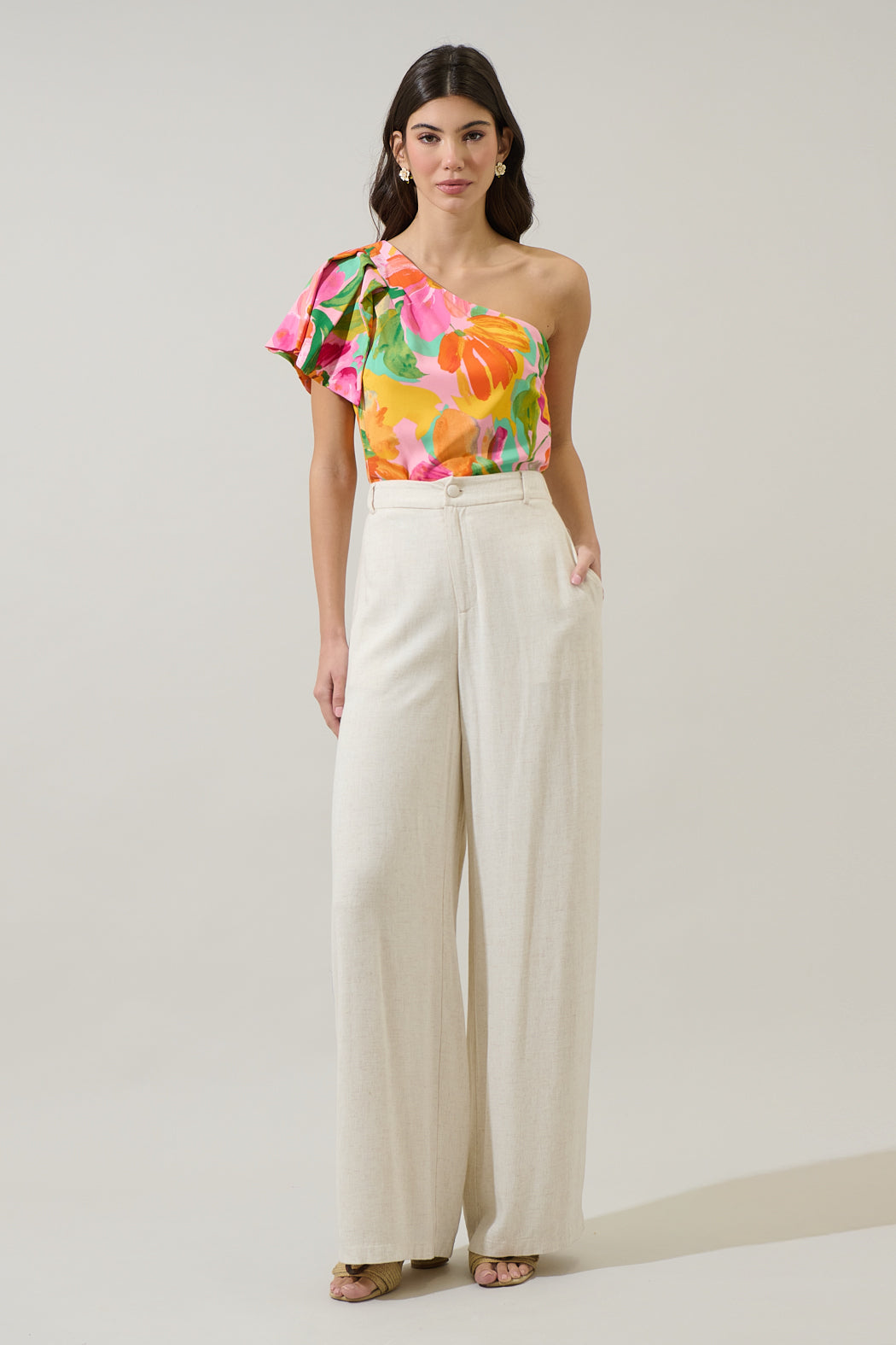 Your wardrobe just found its new summer fling with this blouse! Featuring an asymmetric neckline and a beautifully voluminous ruffle detail on the sleeve. It has an invisible zipper on the side. Pair it effortlessly with high waisted pants and heels.
