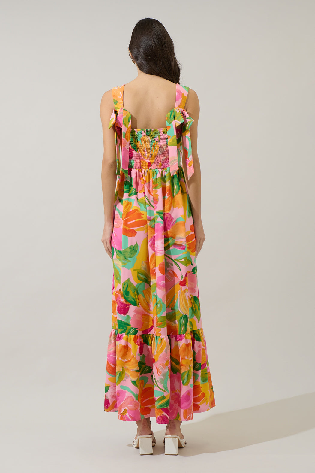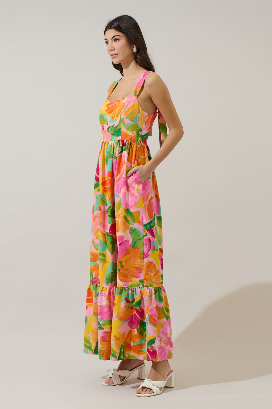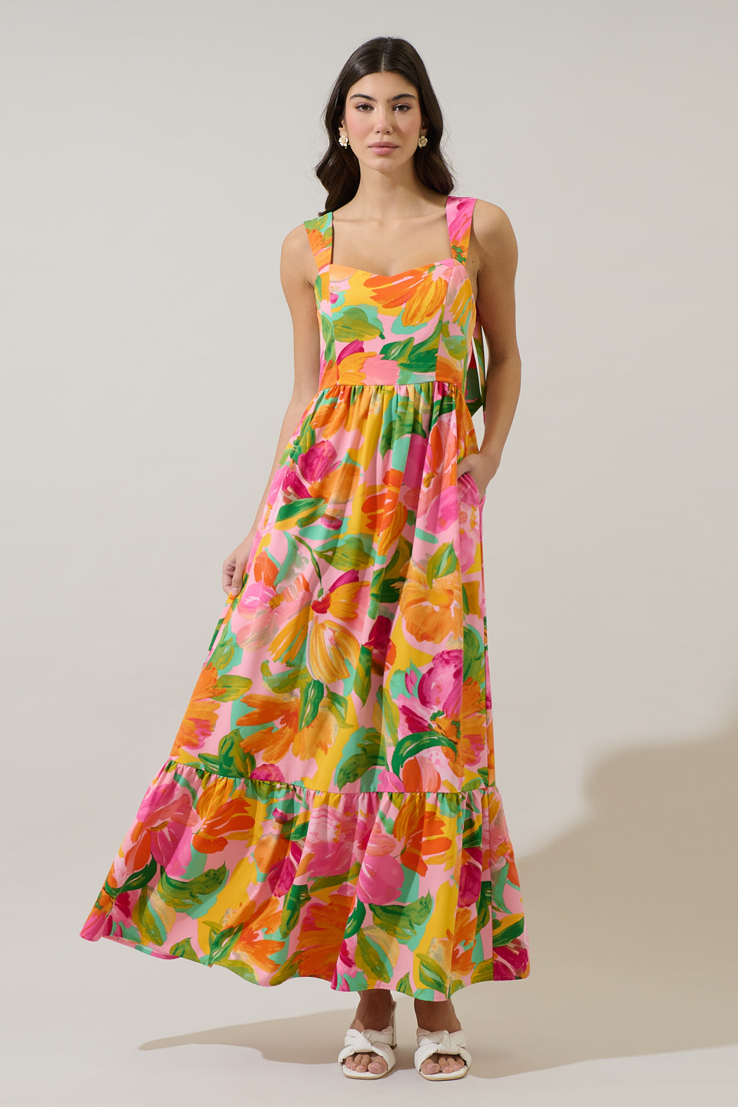 Bring the sunshine with you in this vibrant maxi! It features wide shoulder straps, a flattering square neckline, and a soft, flowy silhouette that moves beautifully with every step. The gathered waist and tiered hem add the perfect touch. Finished with side pockets, and pair it with woven heels.