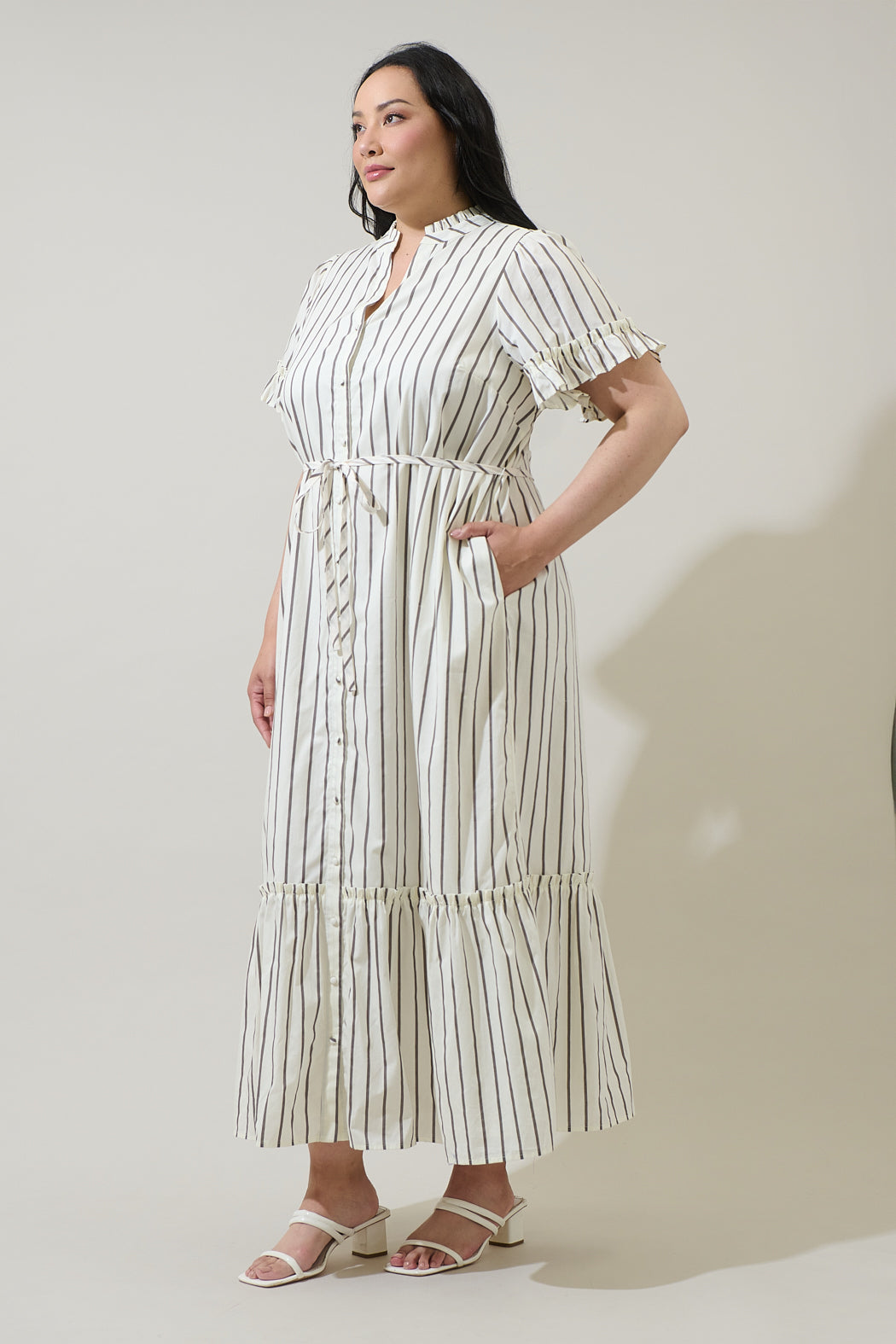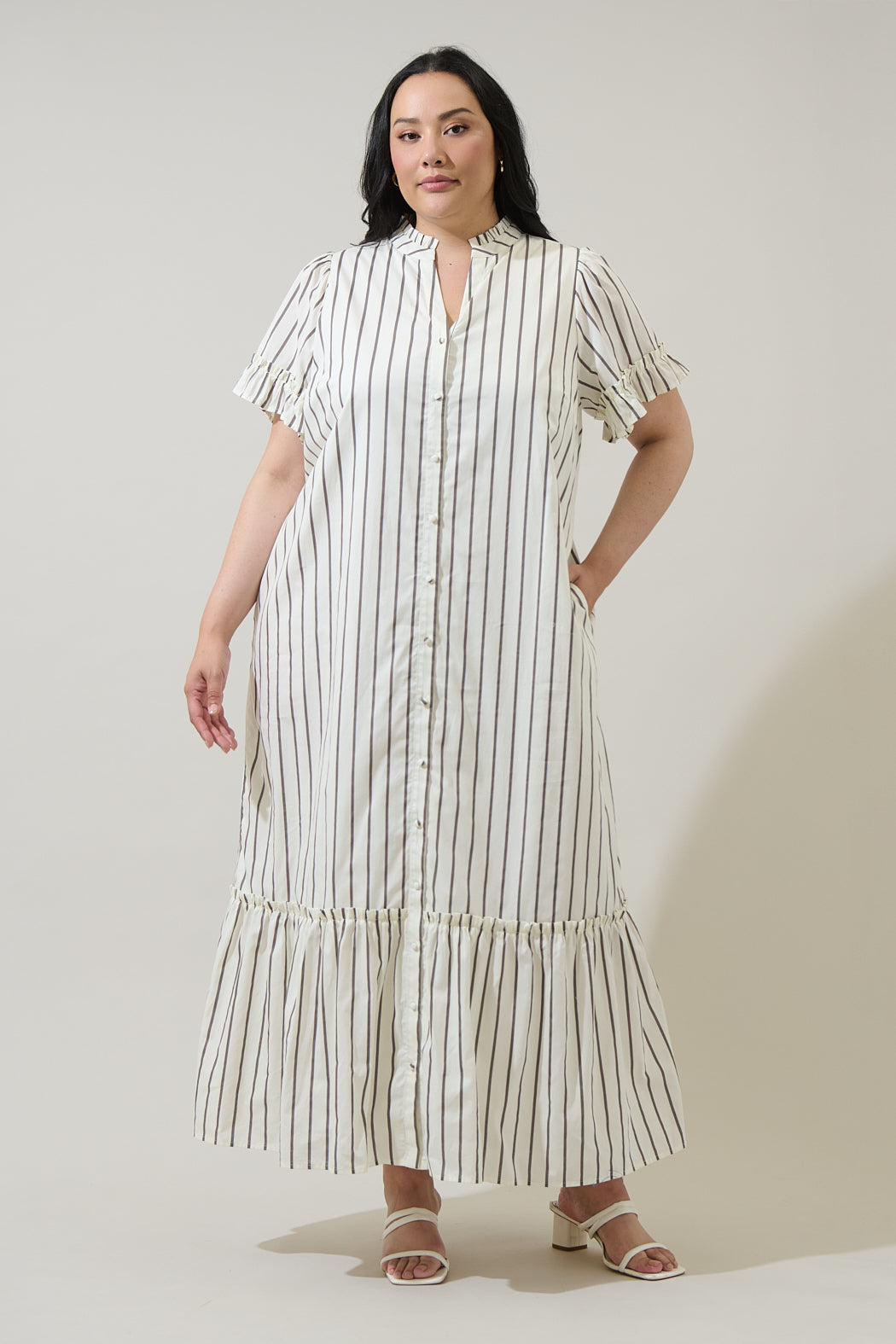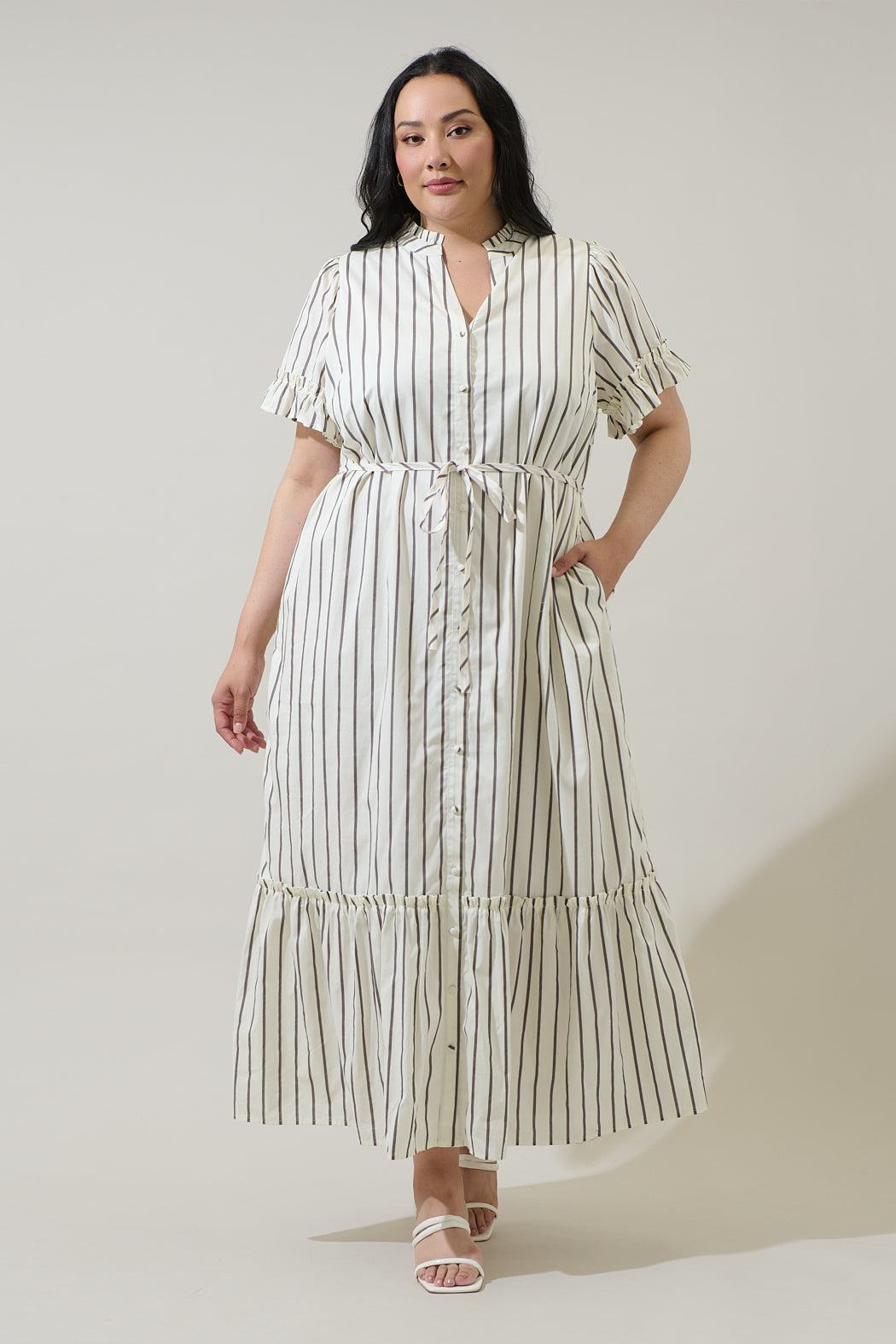 Forget solids, make a statement! This pretty dress has cute stripes and is designed with short ruffle sleeves, a button front, adjustable waist tie, and tiered hem for effortless charm. Perfect for any occasion, just add on your heels or sandals.