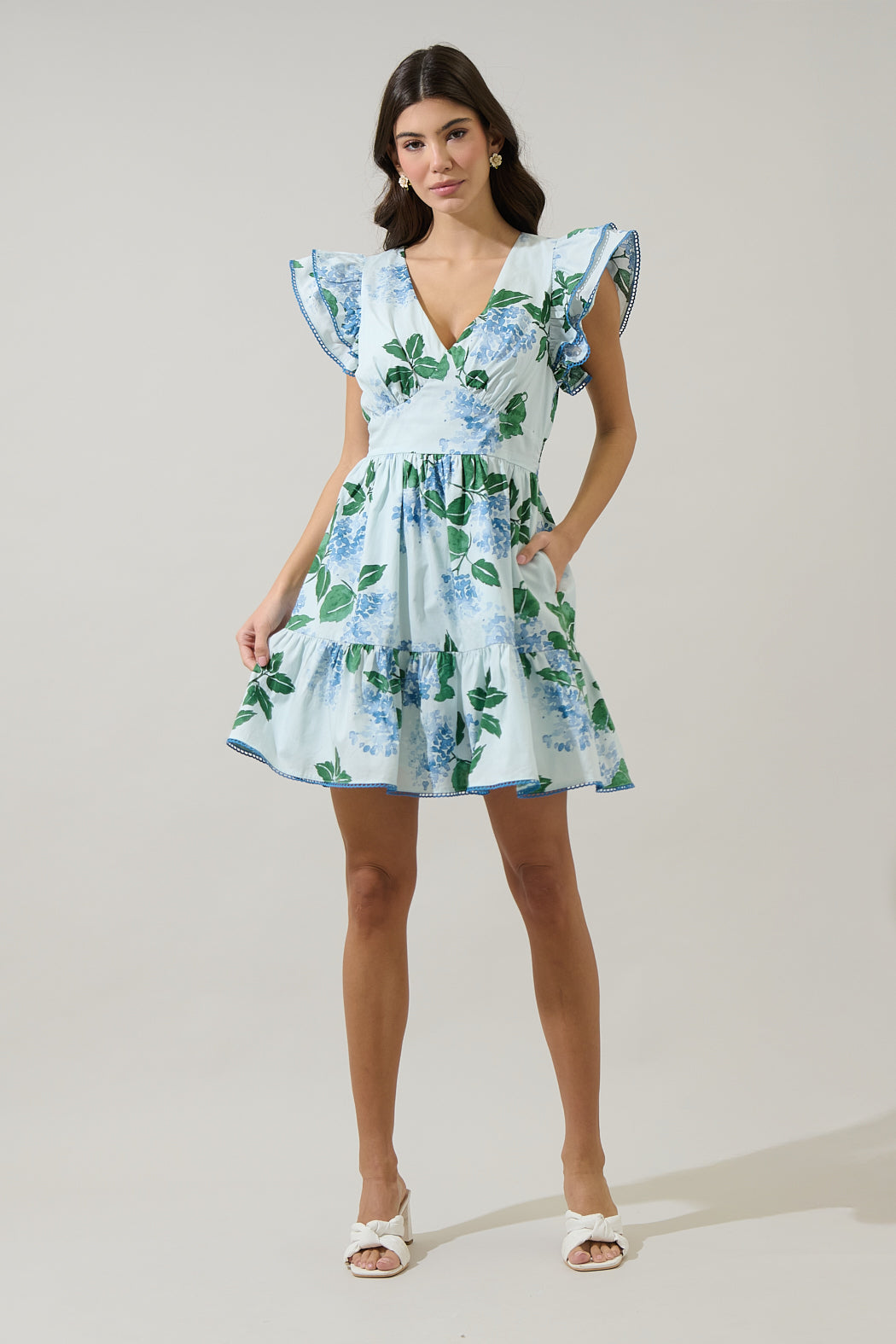 What floral dreams are made of. This mini dress has a fitted bodice and a flared, tiered skirt. Followed by a flattering deep V-neckline and short ruffle cap sleeves. The skirt has a single large ruffle or flounce tier near the hem, giving it bounce and movement. Pair it with heels.