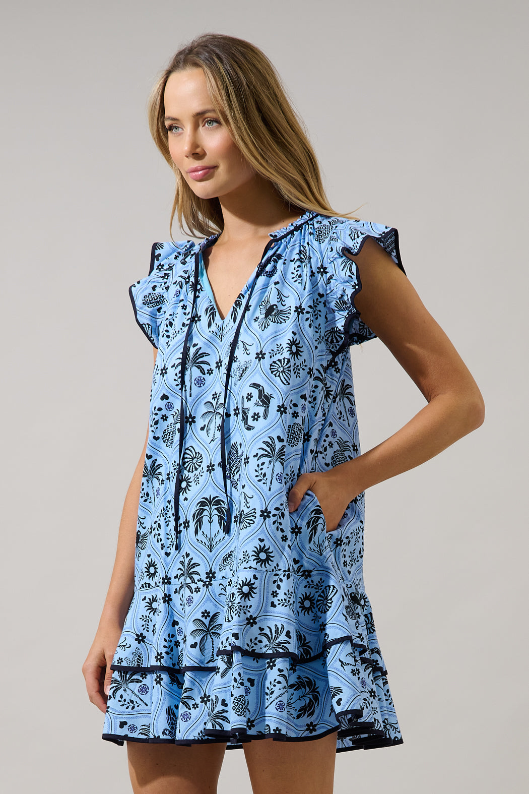 Taris Ruffe Mini Dress Feiry Tropics
