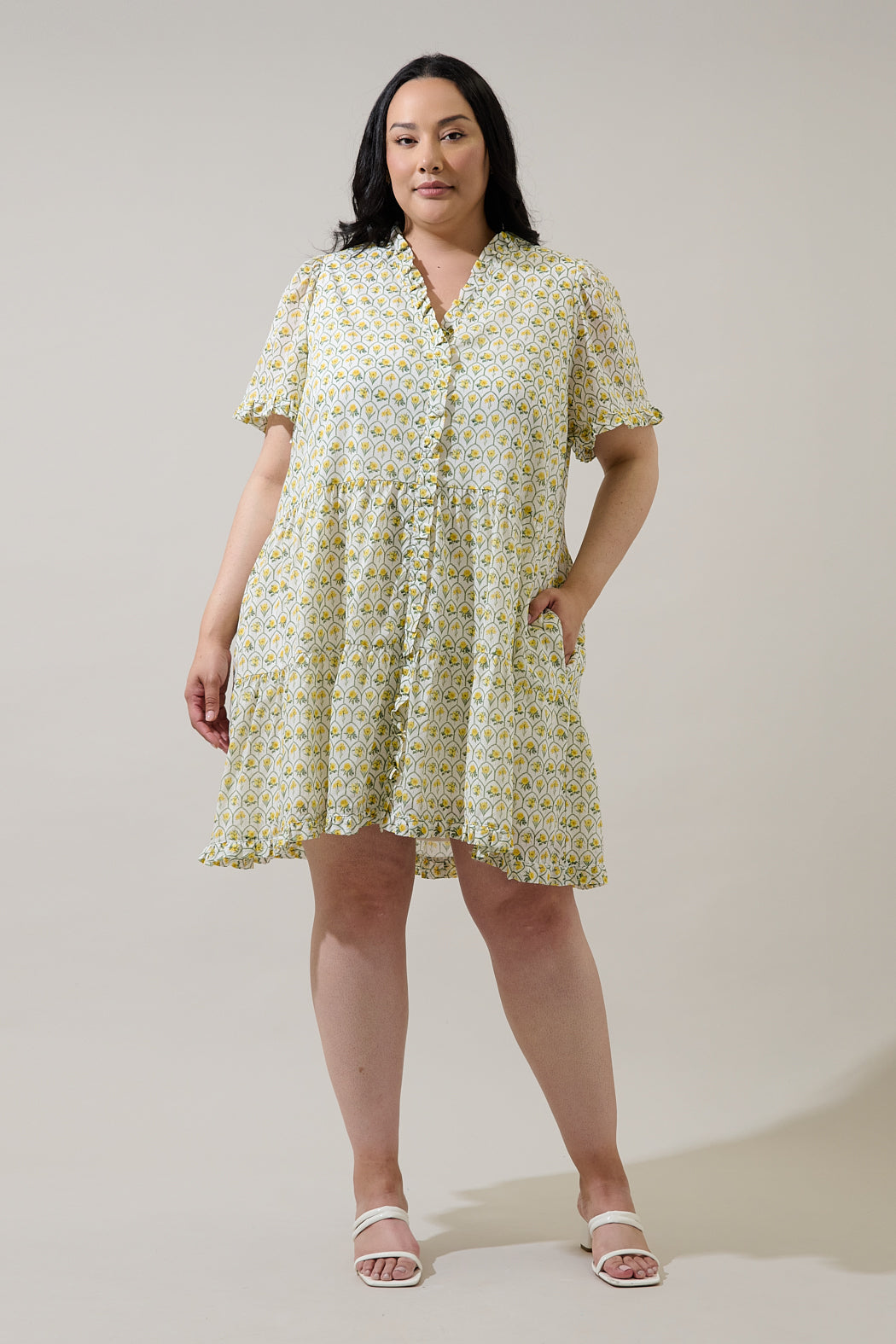 The ultimate grab-and-go piece for warm weather, garden parties, and everything in between. Featuring a flattering V-neckline with ruffles along the sleeves, neck and front. The relaxed fit of the shift design ensures all-day comfort. Pair it with woven heels.