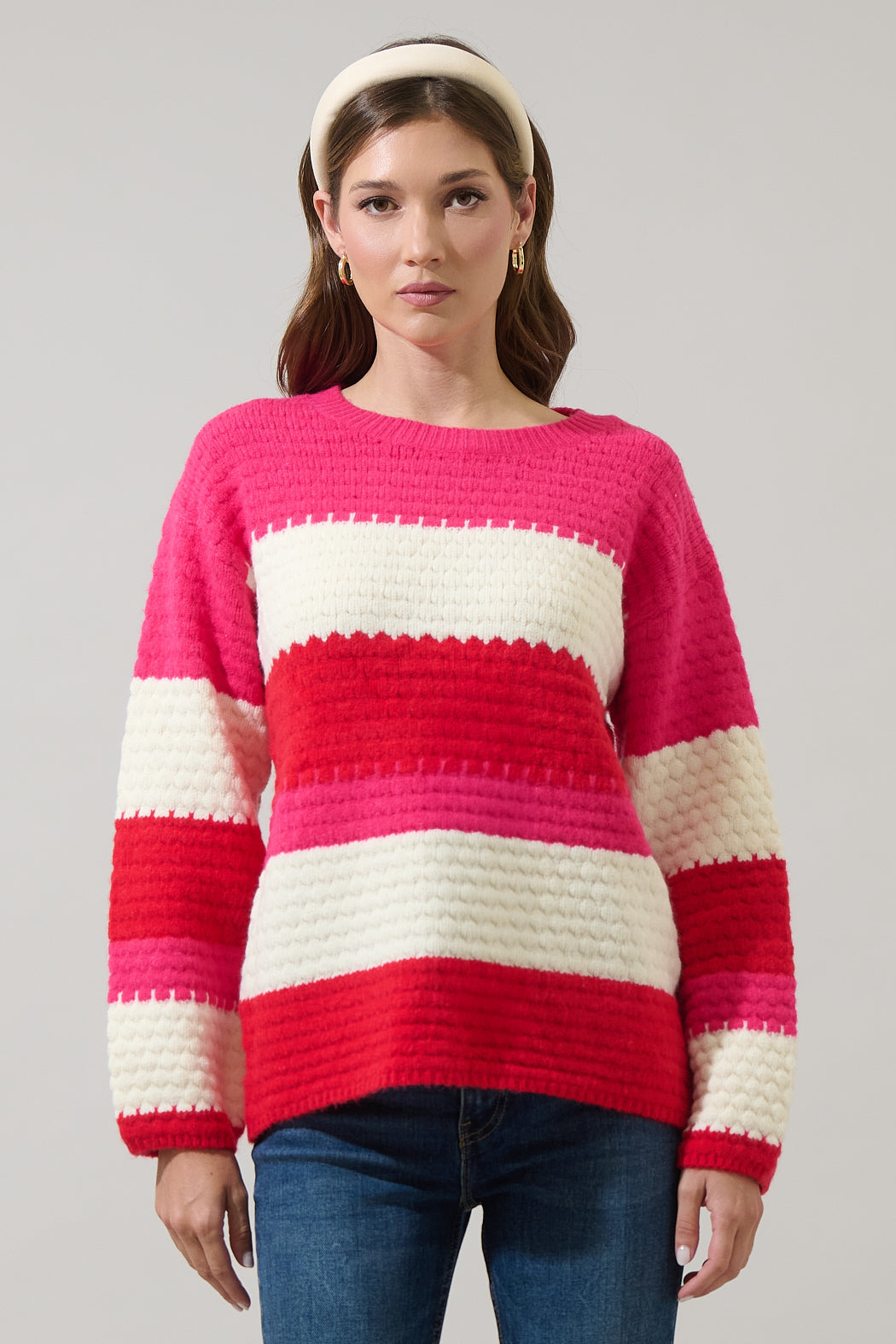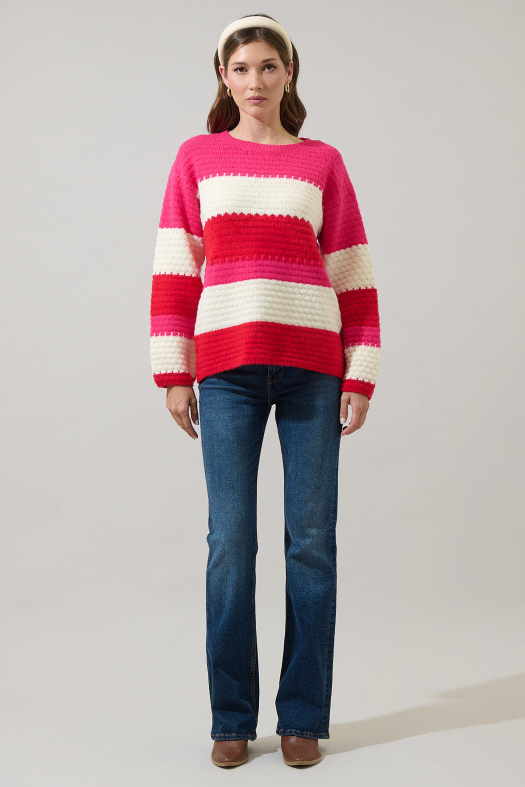 Bold, cozy, and made to stand out! This color block sweater is a cool-weather favorite. Designed with a striking honeycomb knit pattern, classic crew neck, and an oversized fit, it’s as comfy as it is stylish. Style it with straight-leg jeans, chunky sneakers, and a slouchy tote for an effortlessly on-trend look.