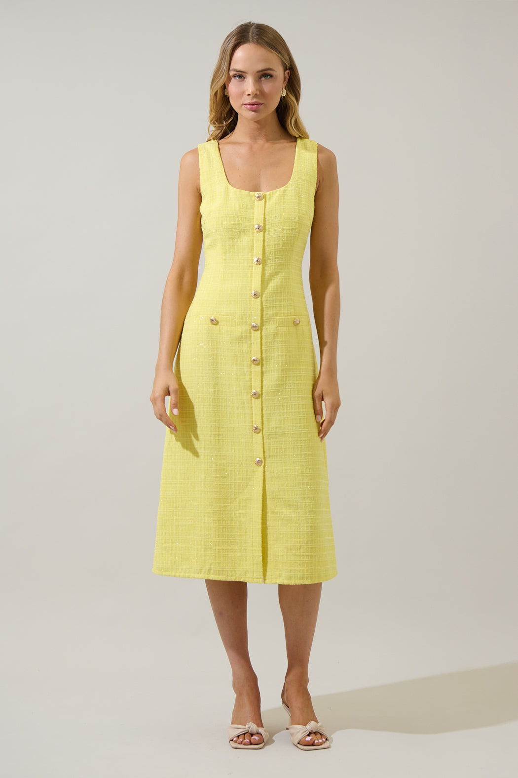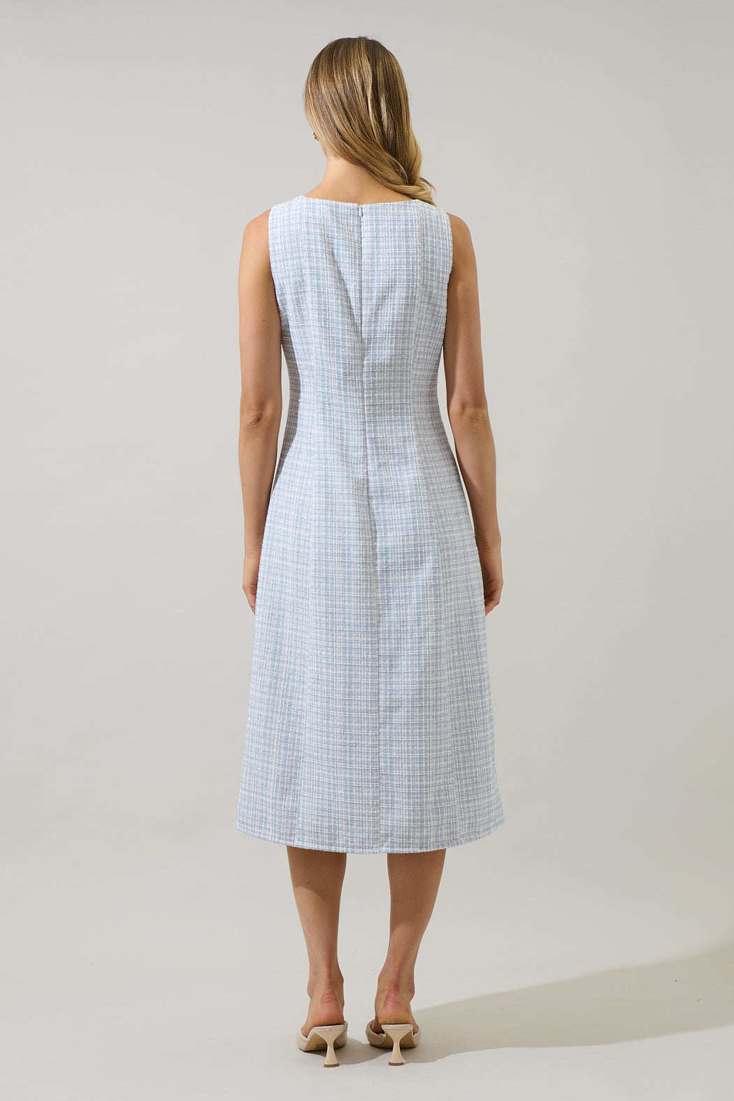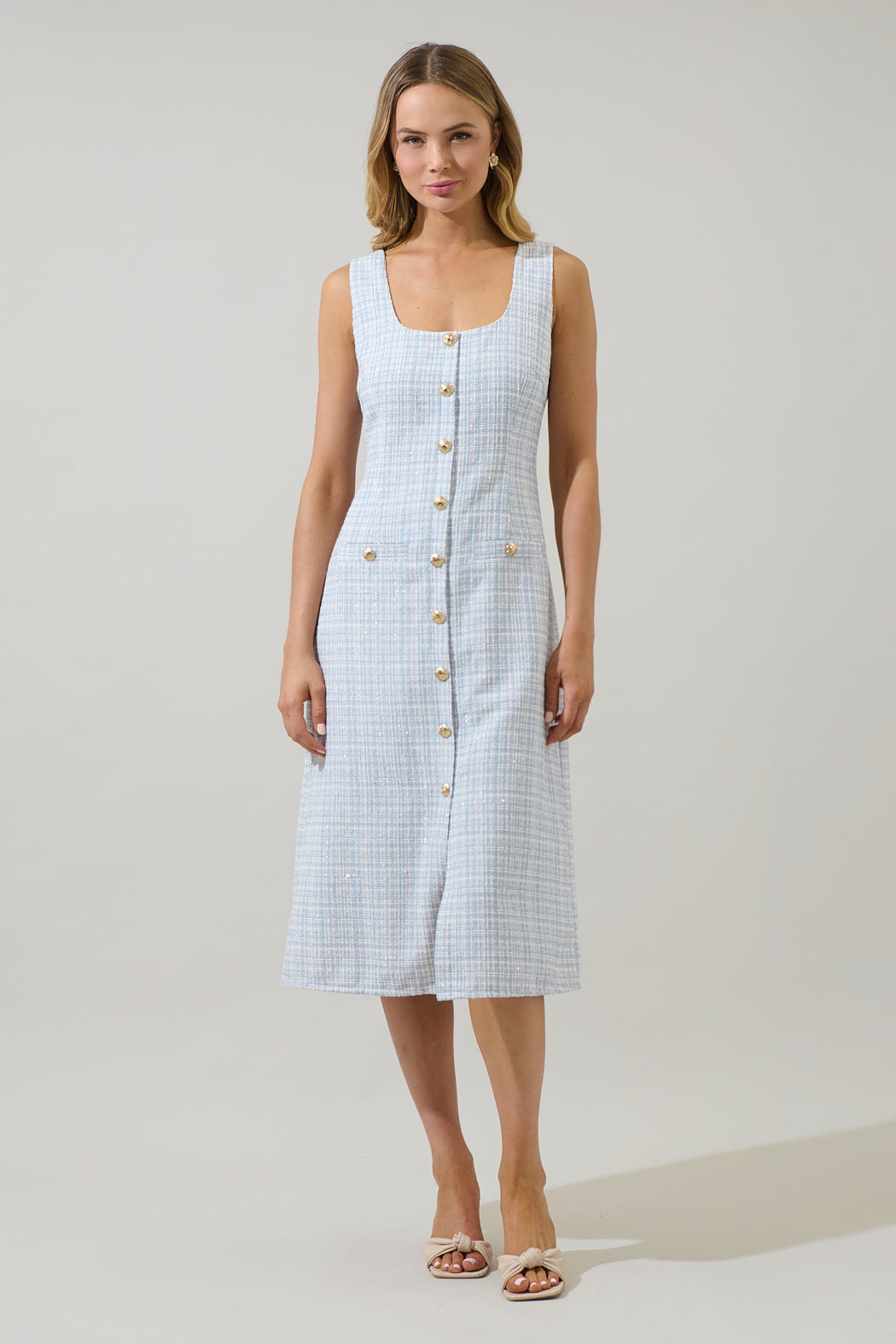 Your next favorite dress just walked into your wardrobe. Crafted from textured tweed, it features a sleeveless cut, full lining for comfort, and a sleek back invisible zipper. Decorative pocket details add a polished touch. Style with pointed-toe heels and a structured handbag for a timeless, elevated look.