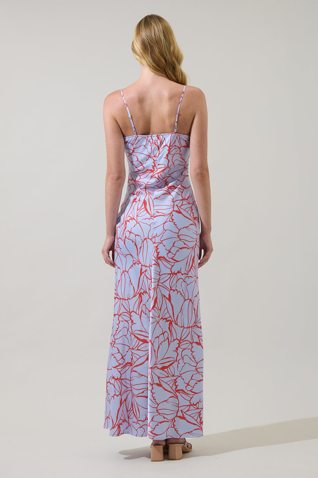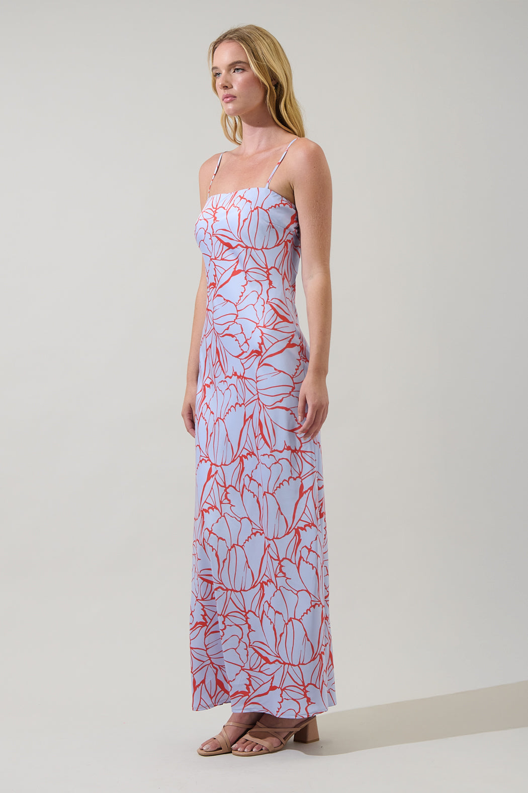 Float into elegance with this stunning floral maxi dress. It features adjustable spaghetti straps and straight neckline for a seamless fit. Style it with strappy heels and a woven handbag for a romantic vibe.