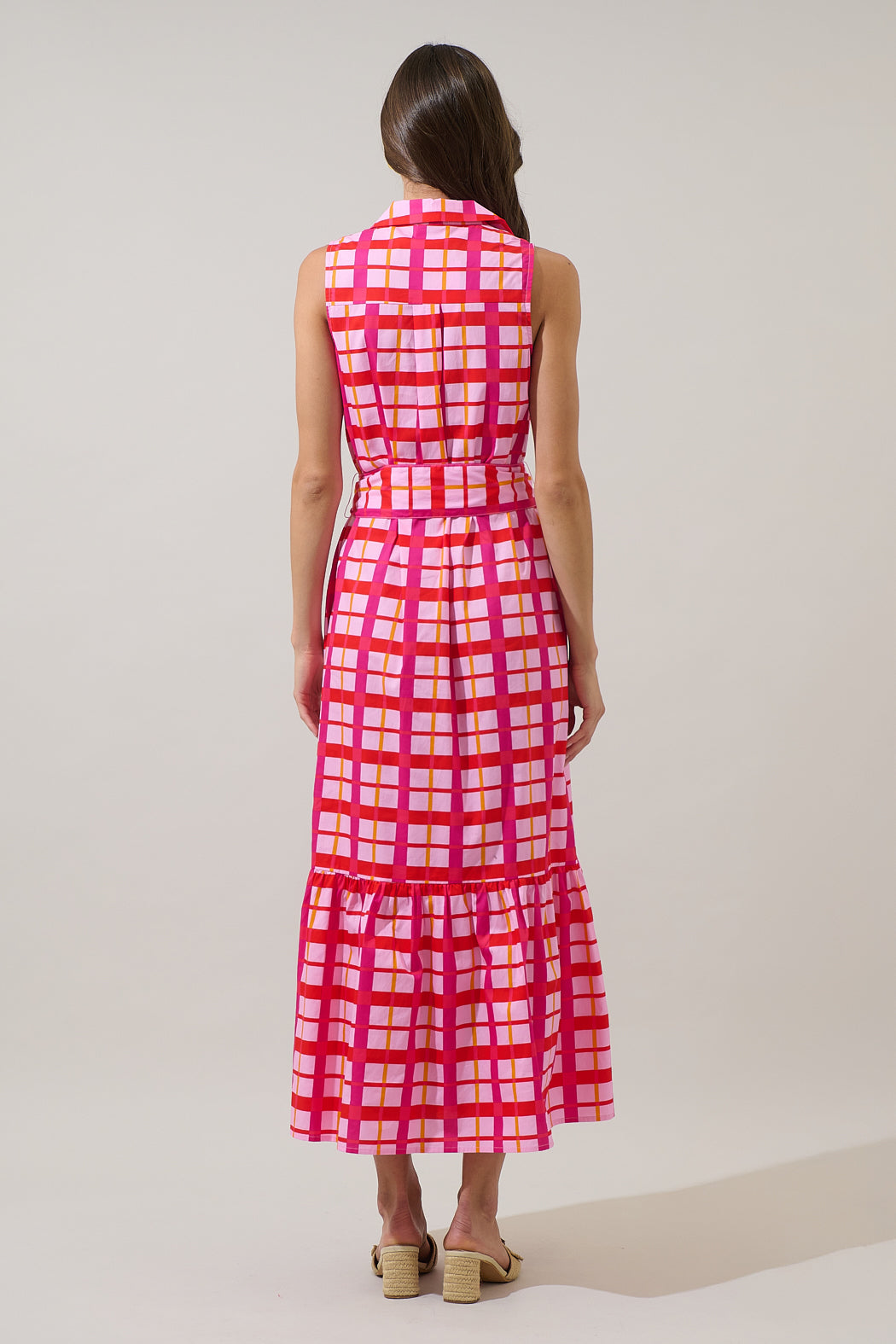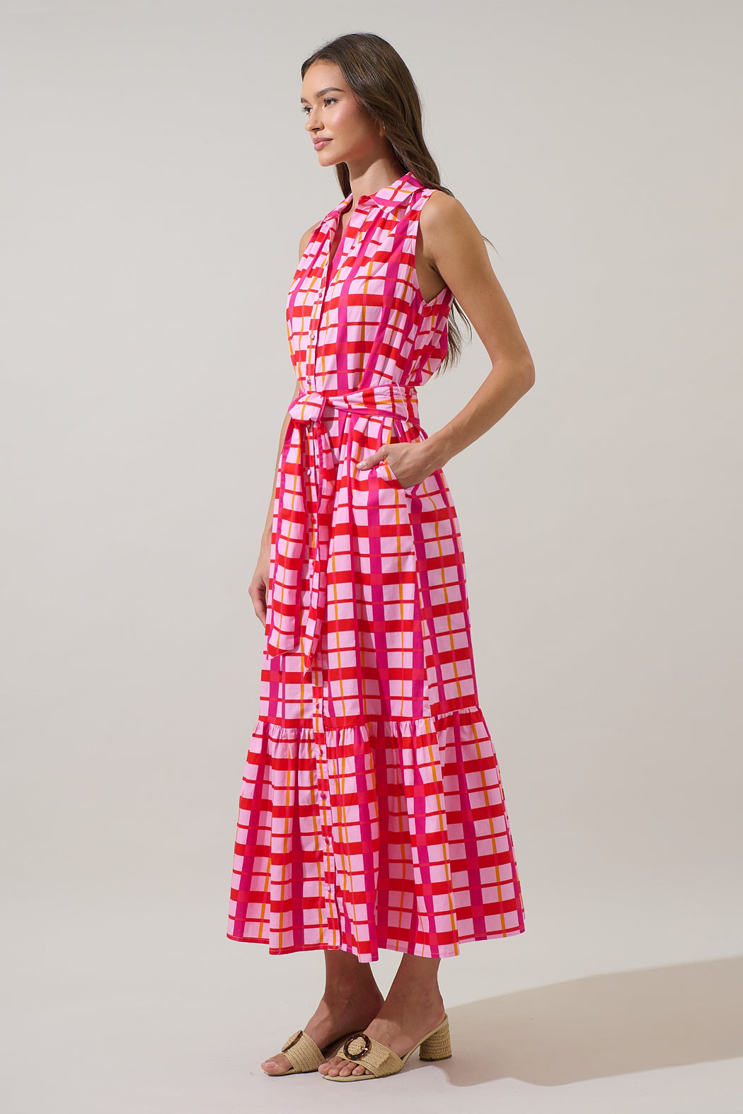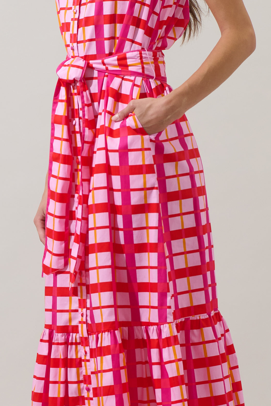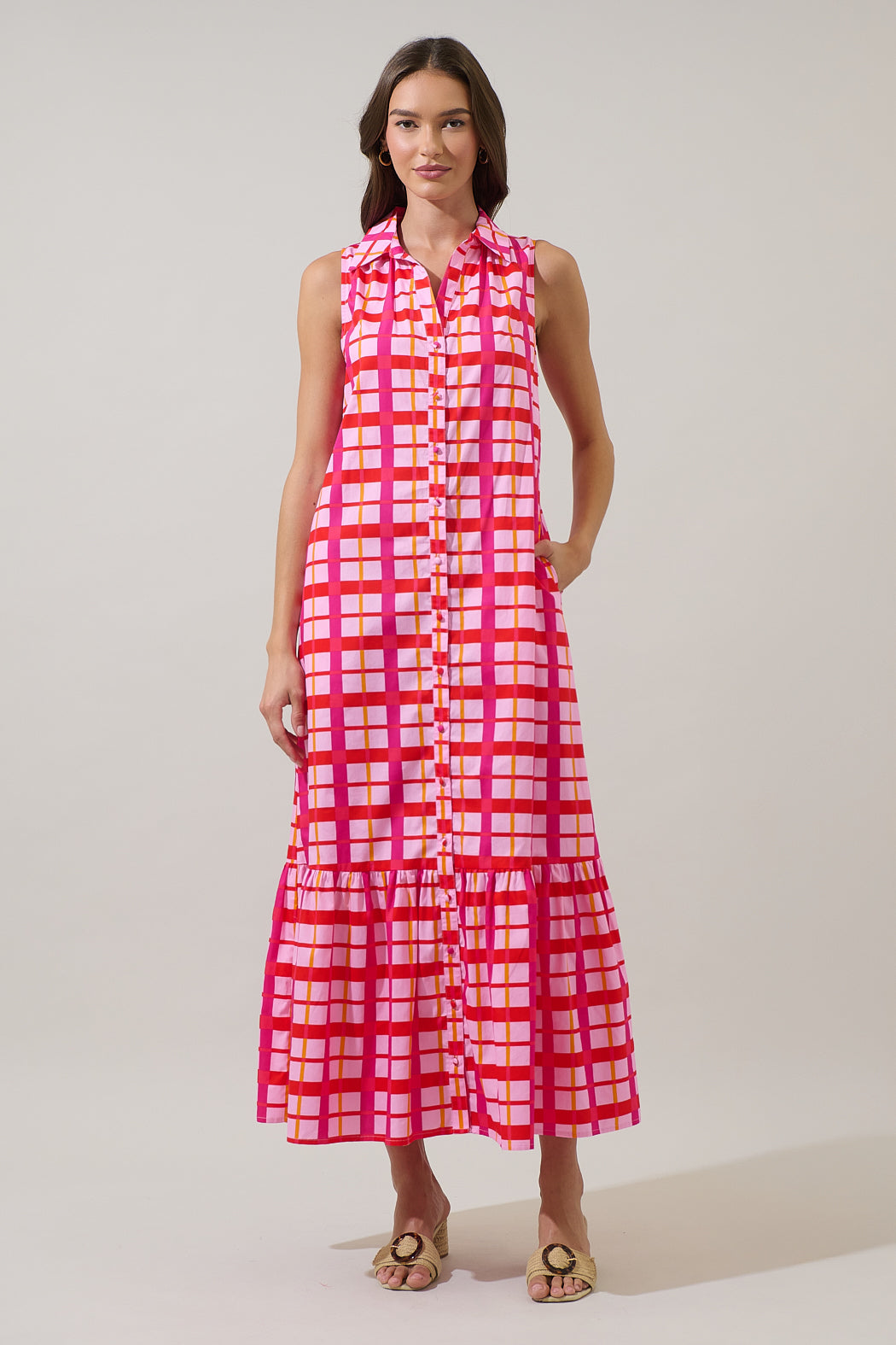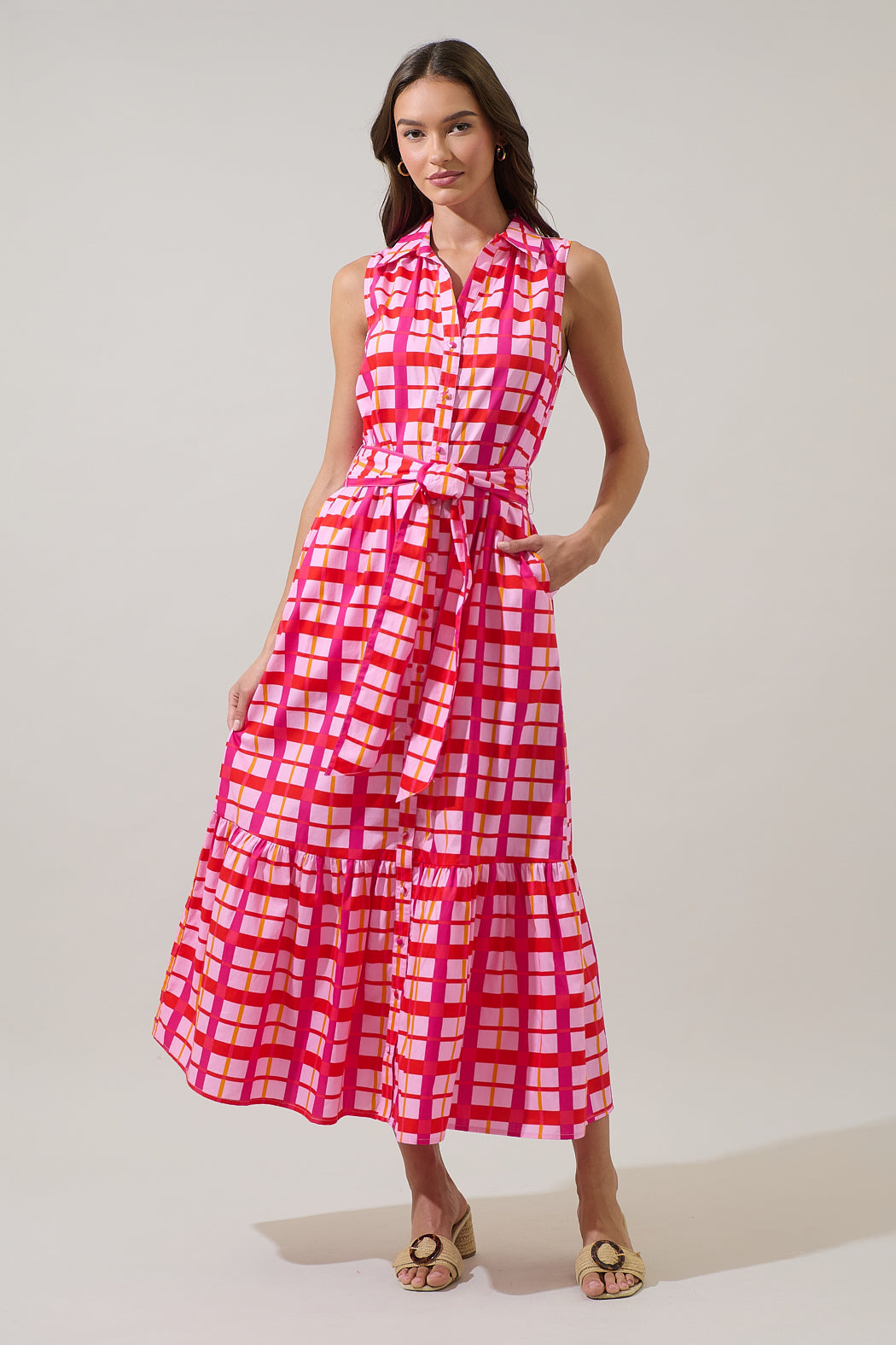 When in doubt, go checkered! A sleeveless look, with a high collared creates a split neckline and a button-down front. The belt around the waist can be adjusted. Pair it with white heels and matching earrings.