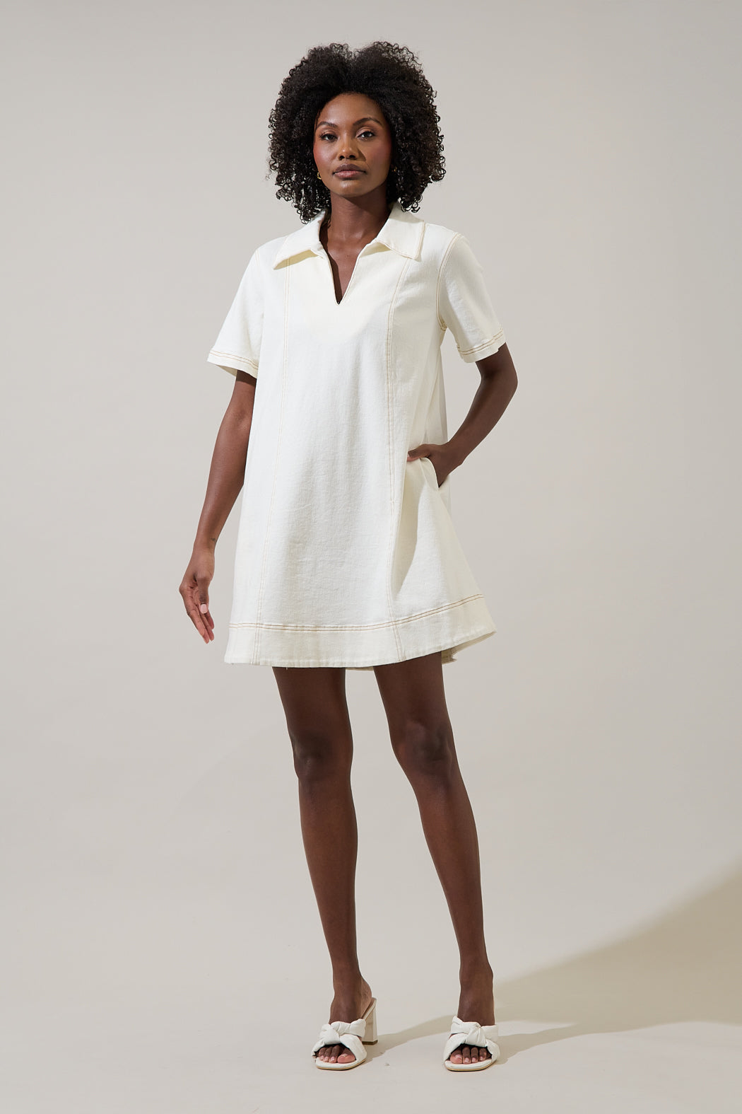 Turn heads without trying in this effortlessly cool denim mini dress! Designed with a collared neck, half sleeves, and a relaxed fit, it also features handy pockets for on-the-go ease. Pair it with ankle boots and a bold crossbody bag for a chic, casual vibe.
