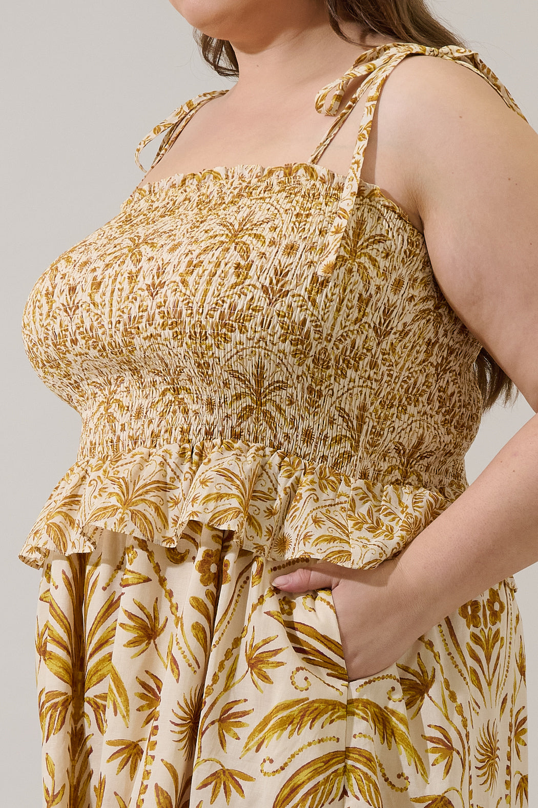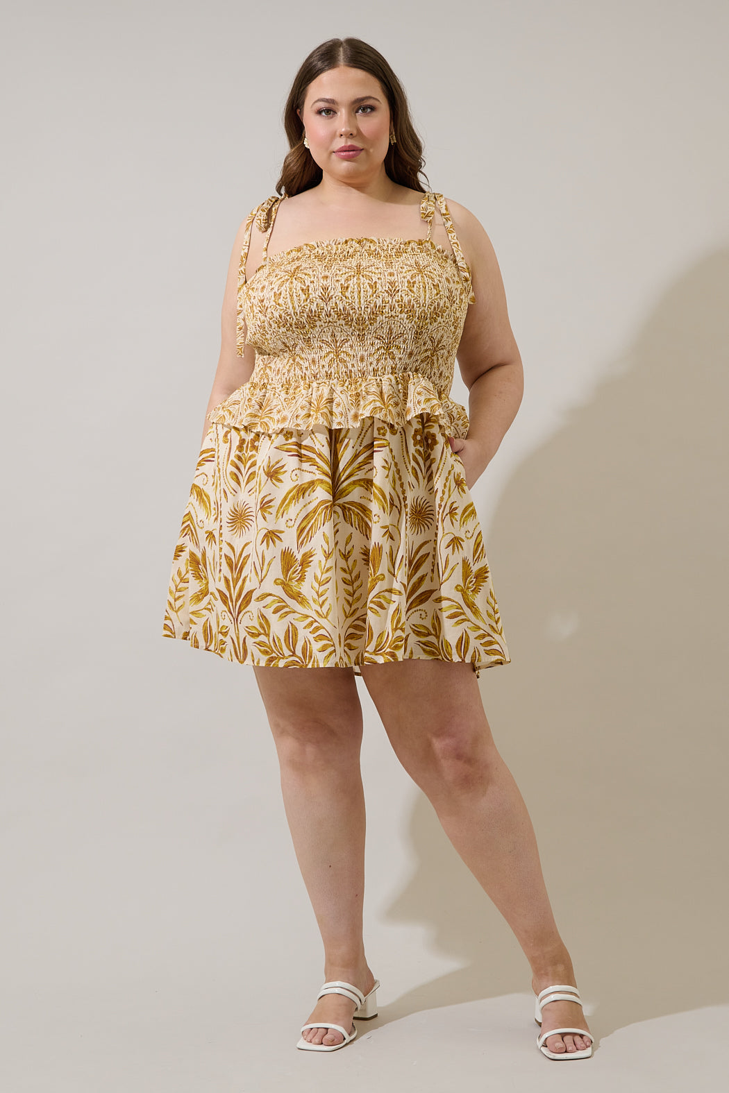 Calina Tropical Irvine Smocked Mini Dress Curve