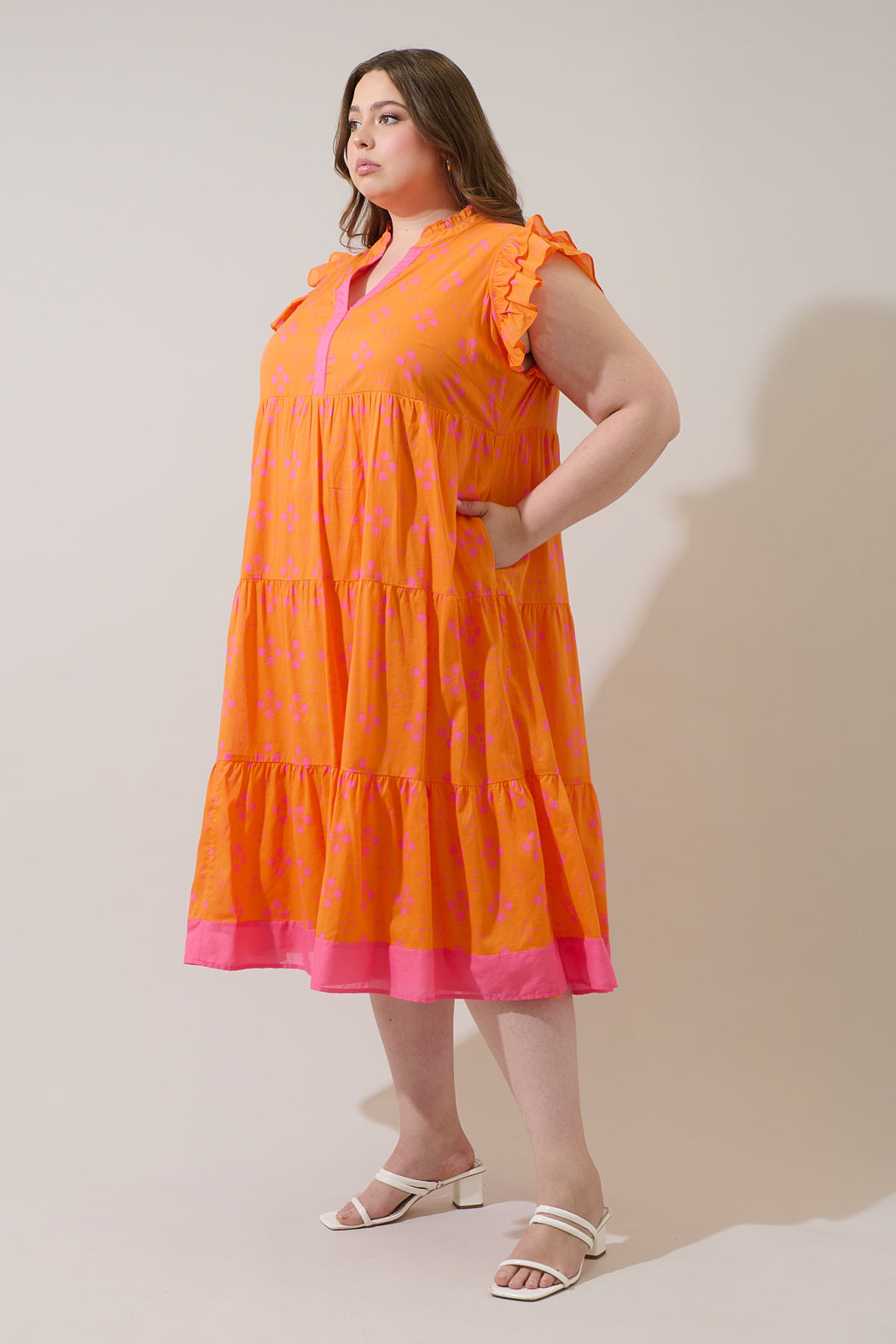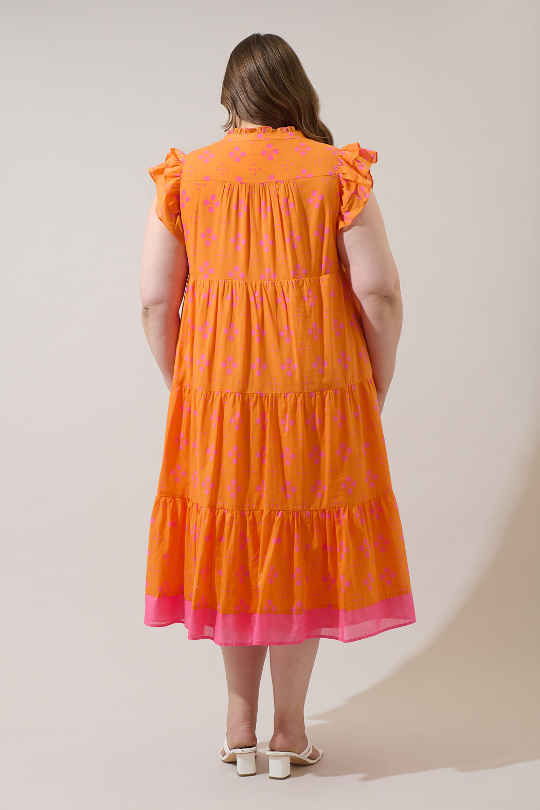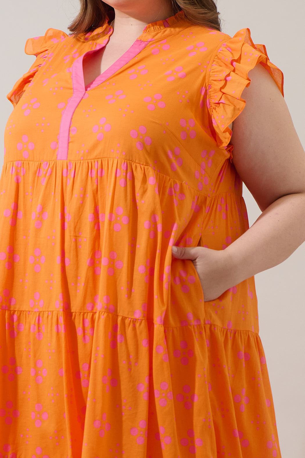 Brighten up your wardrobe with this vibrant and playful midi dress! Featuring a beautiful floral print, a flattering v neck, charming ruffled neck and sleeves, and functional side pockets, it’s effortlessly stylish and comfortable. Pair with heeled mules and bold earrings for a fun evening vibe.