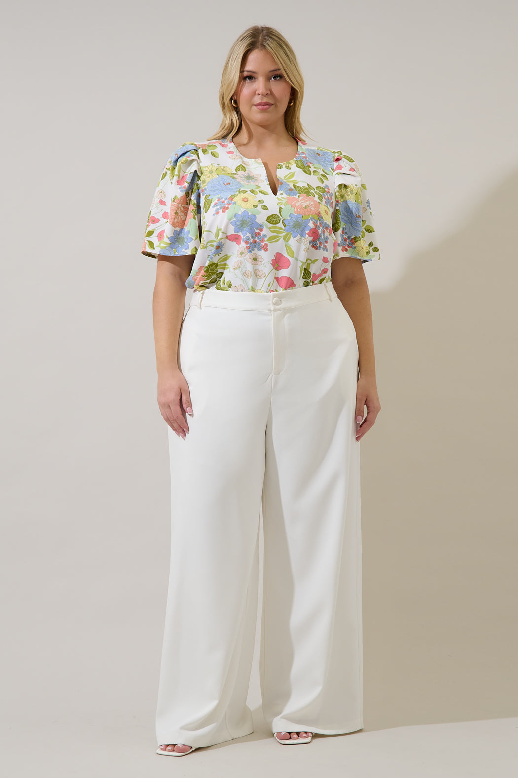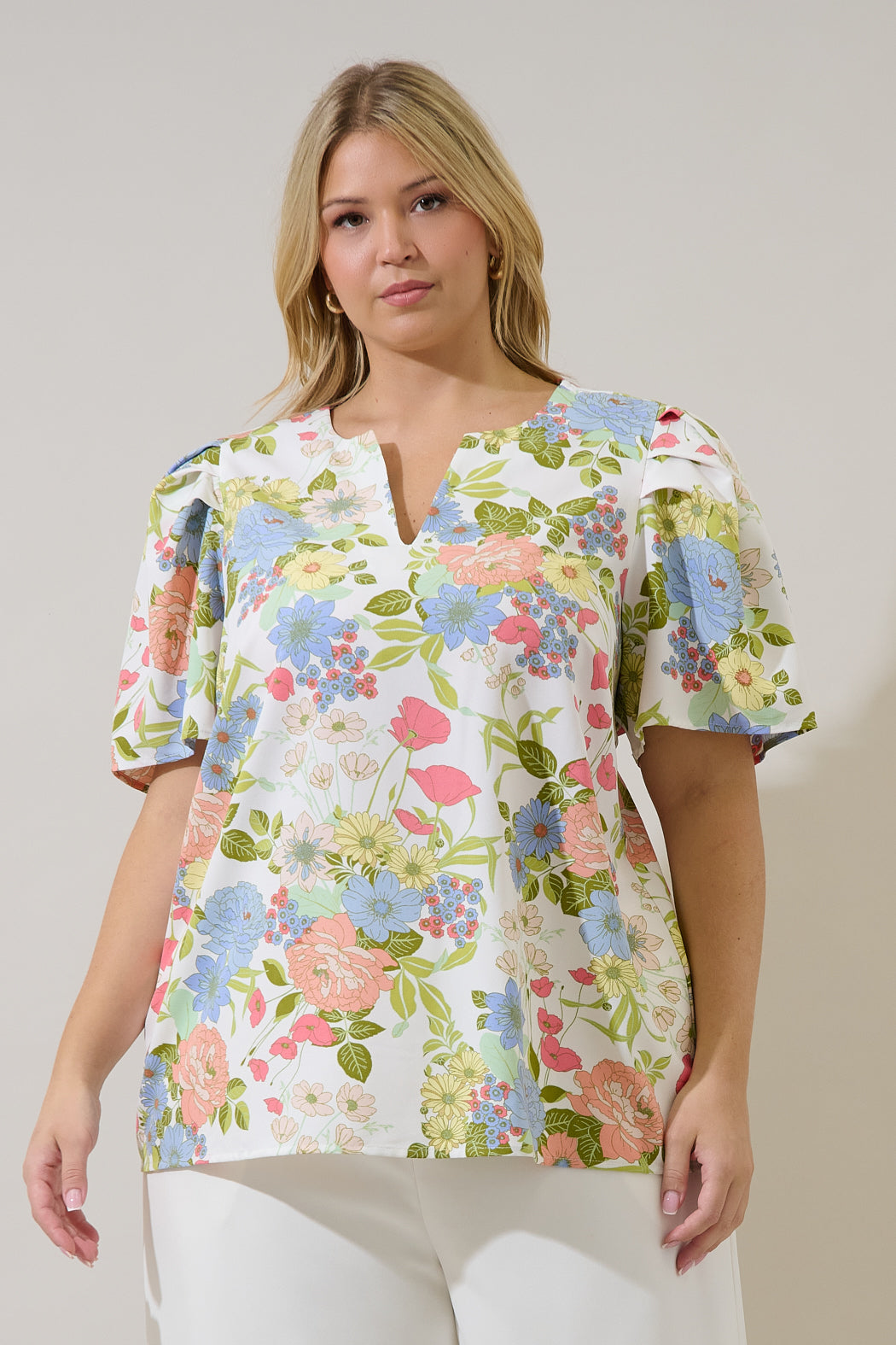 Bring on the garden-party vibes with this top. It features a V-neckline and dramatic pleated puff sleeves that add a touch of modern romance to the structured silhouette. This top pairs perfectly with neutral linens or light wash denim for an effortlessly polished look.