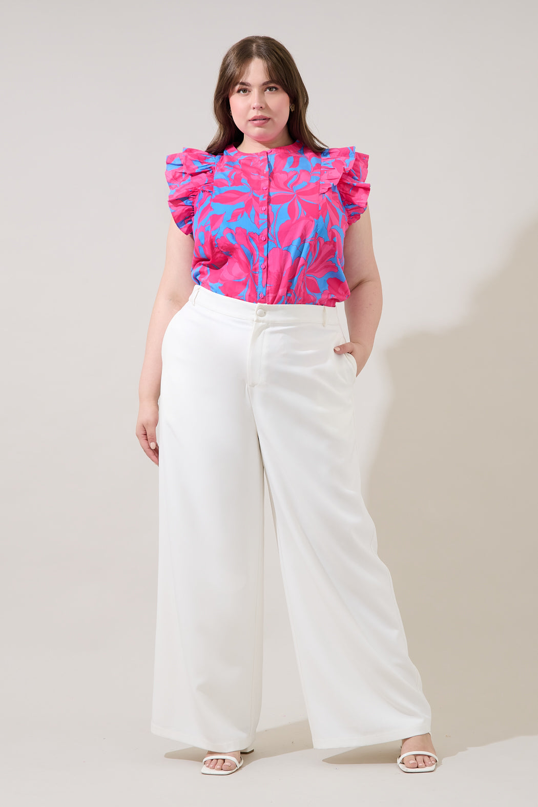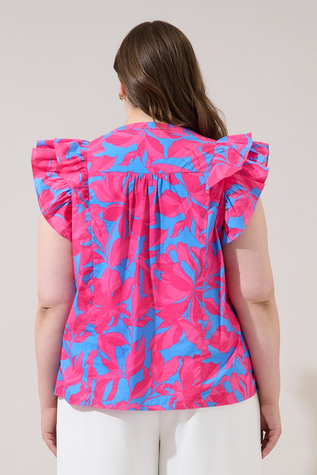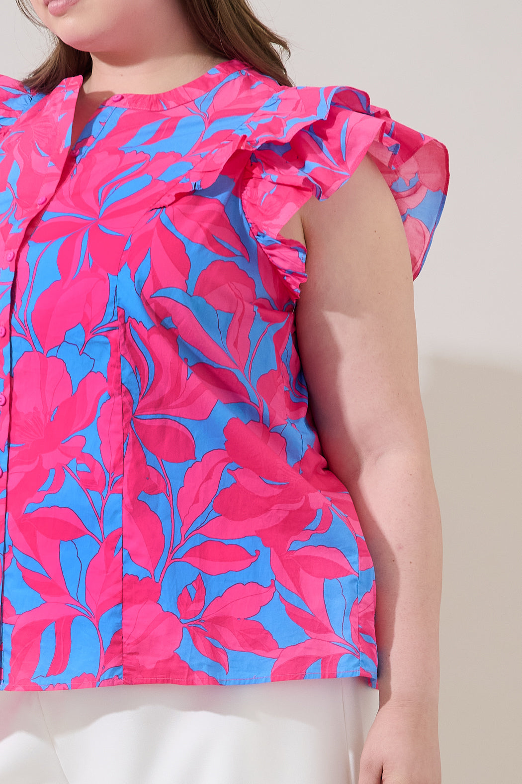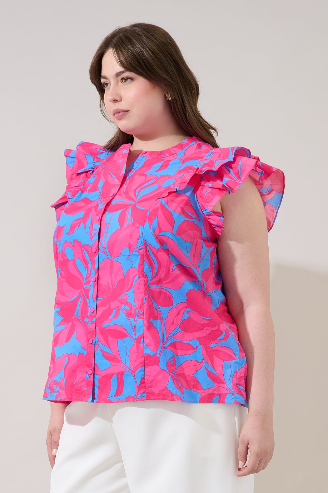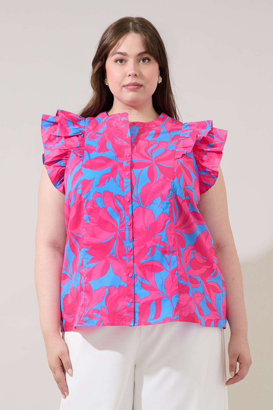 Sammi Button Down Ruffle Top Meira Floral Curve
