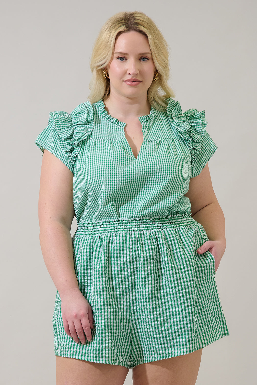Tamara Gingham Ramona Ruffle Split Neck Top Curve