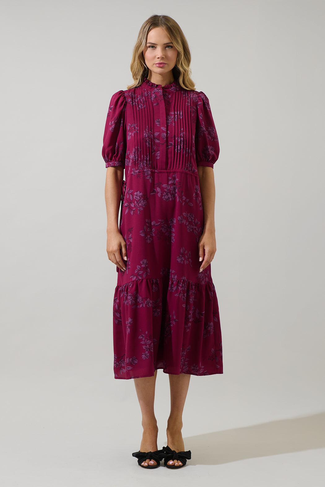 Step into effortless elegance with the Zurum Floral Pleated Midi Dress, designed to make every outing feel special. Featuring short puff sleeves and a pleated bodice, followed by a drawstring around the waist that can be adjusted, this floral beauty combines charm and comfort in one. Pair it with strappy heels, a woven tote, and dainty jewelry for a fresh, feminine look.